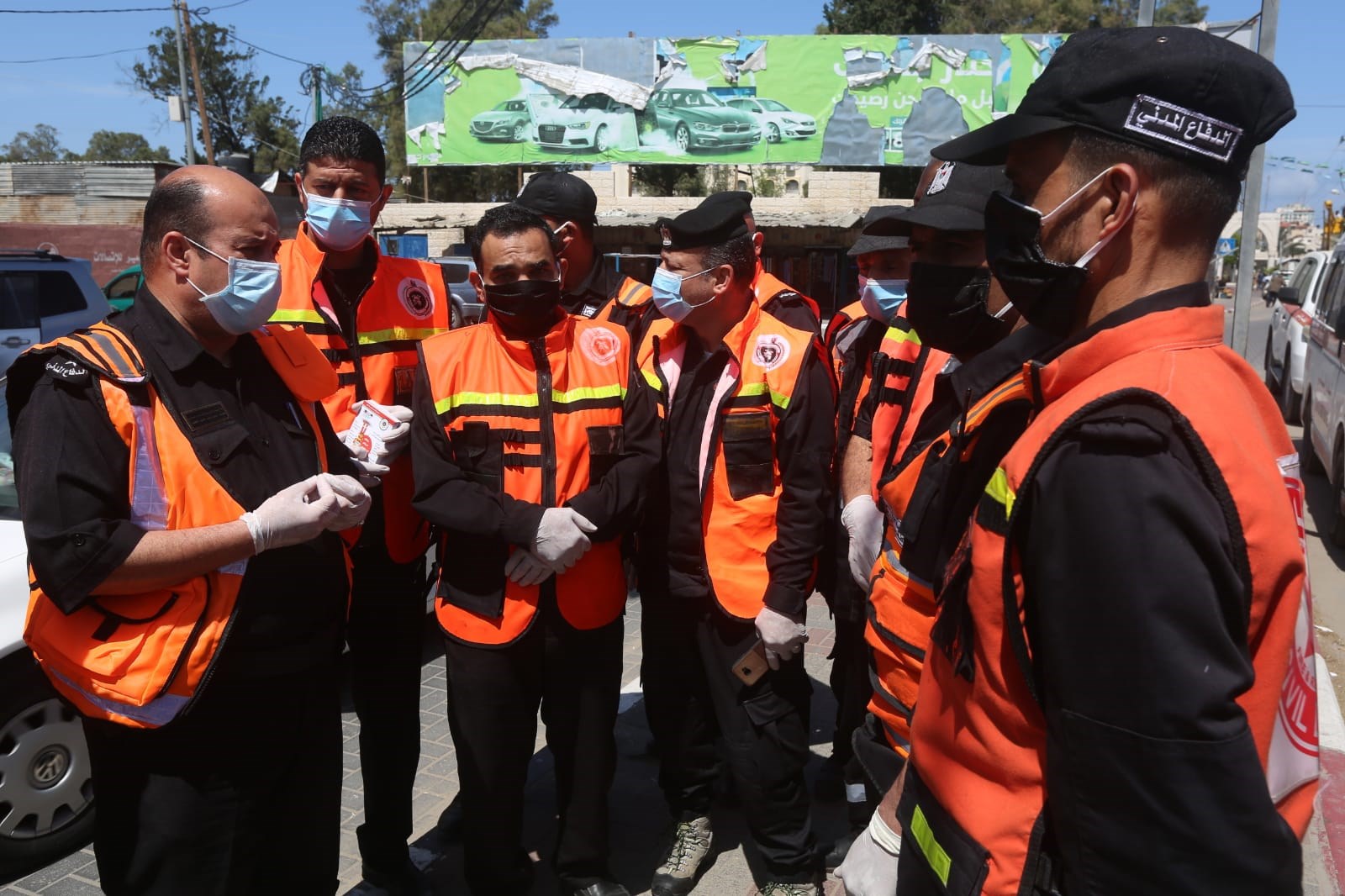 من الدفاع المدني، انتشروا في الشوارع والميادين العامة والأسواق في جميع محافظات غزة؛