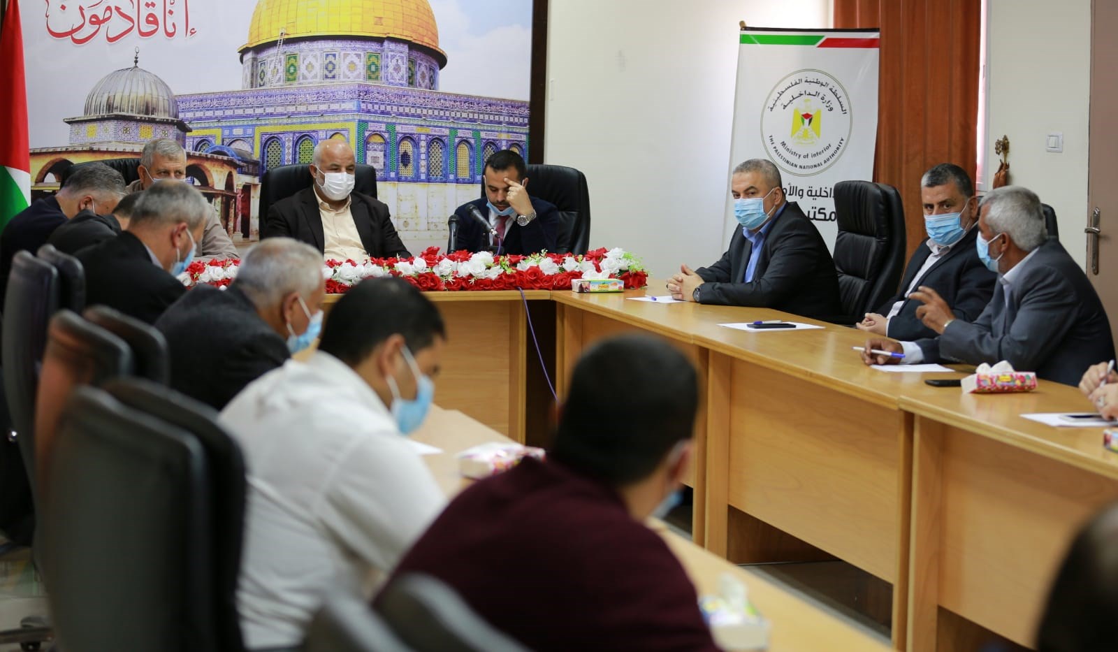 وناقش اللواء "أبو نعيم" مع الوفد الزائر الإجراءات الحكومية المتخذة في مواجهة جائحة كورونا، وسبل تعزيز احتياطات السلامة حفاظاً على سلامة أبناء شعبنا؛ ولضمان منع تفشي الفيروس في قطاع غزة.