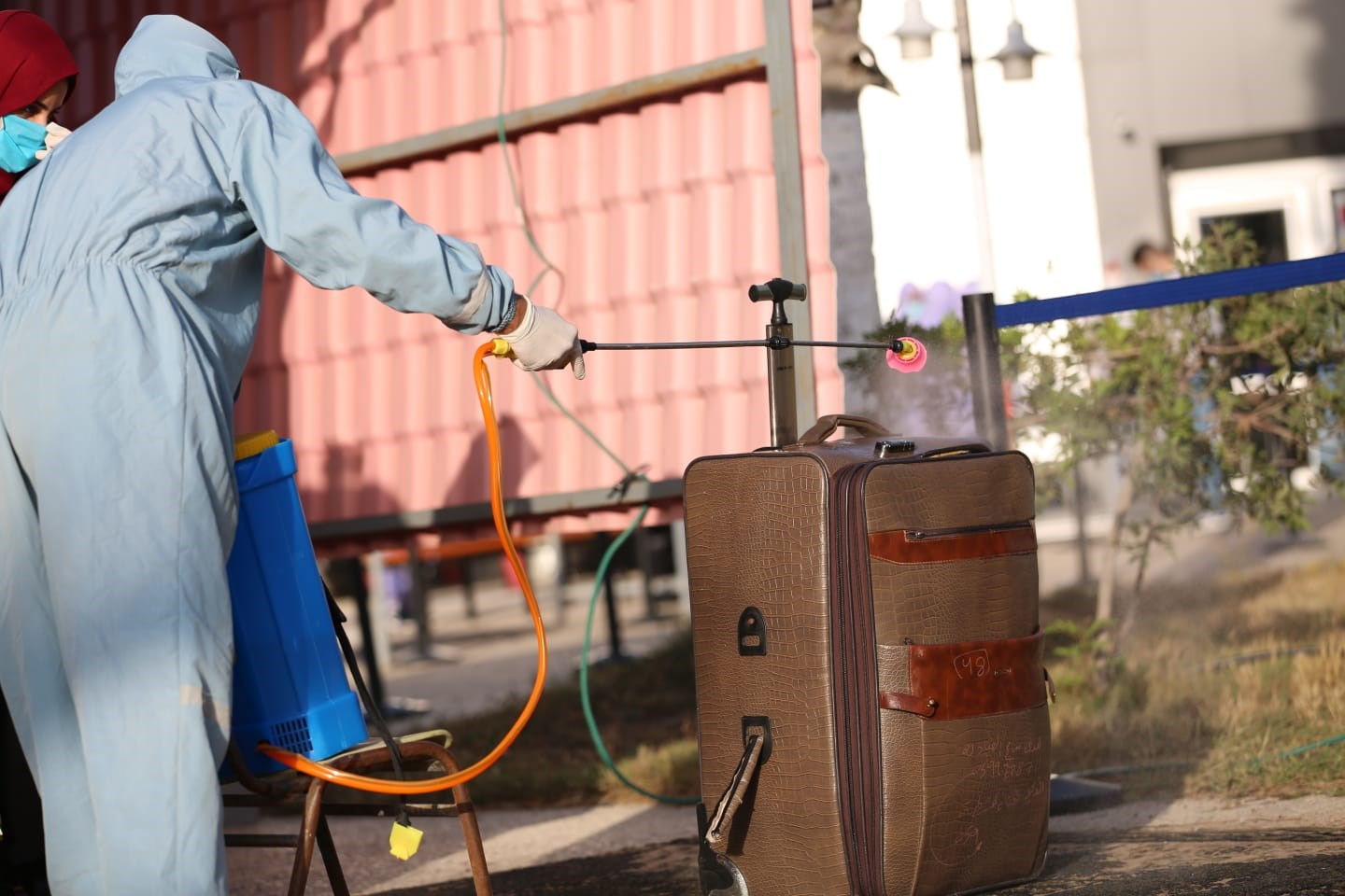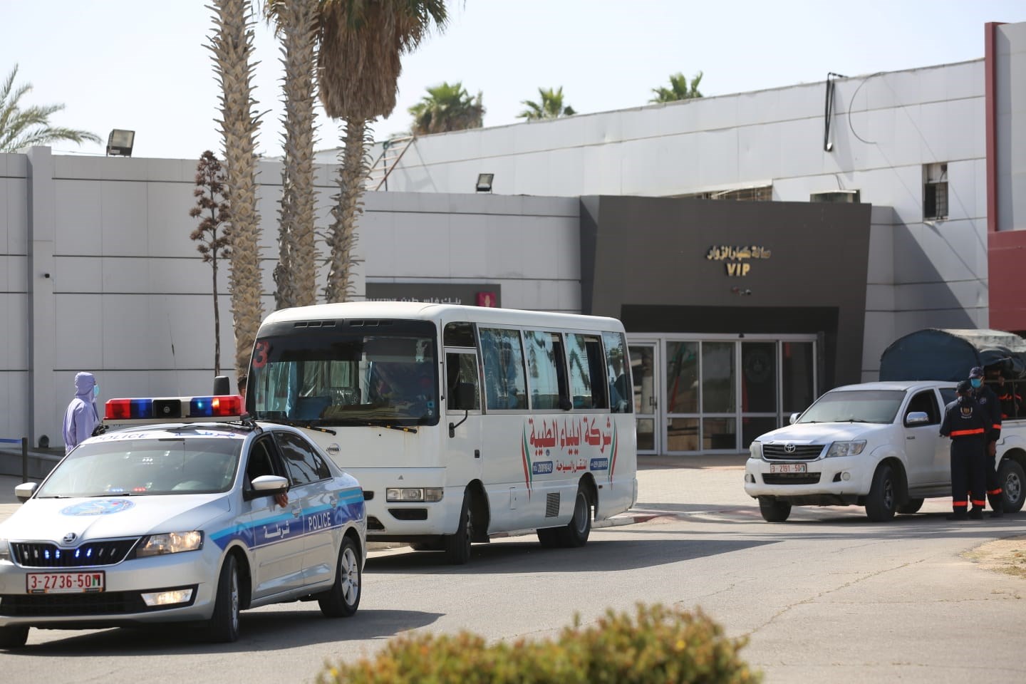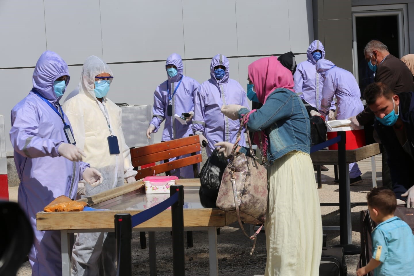 المواطنين العالقين عبر معبر رفح، ونقلهم لمراكز الحجر الصحي وسط إجراءات الوقاية