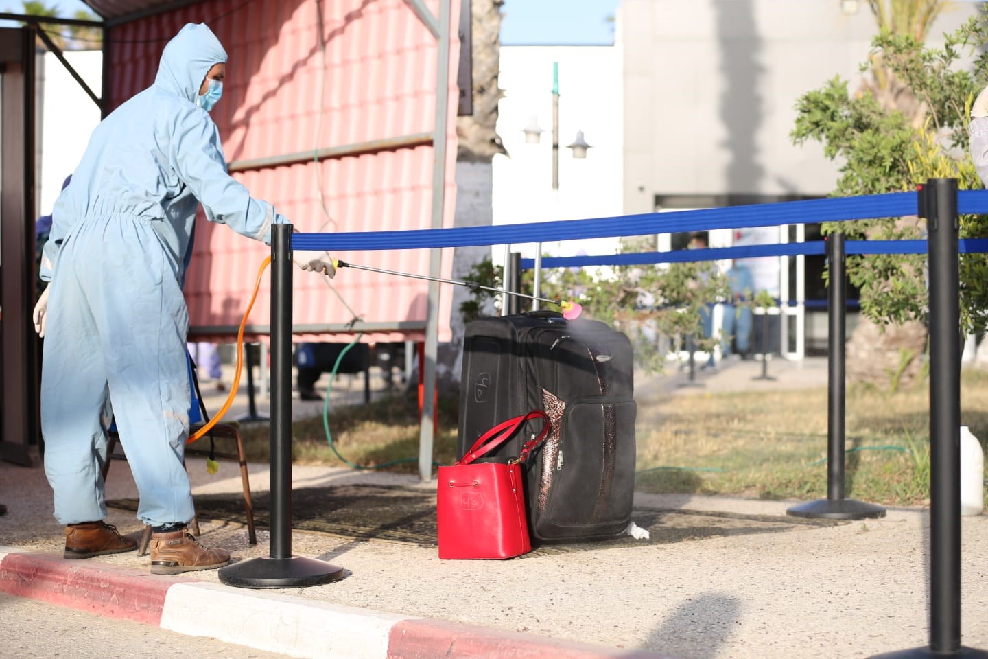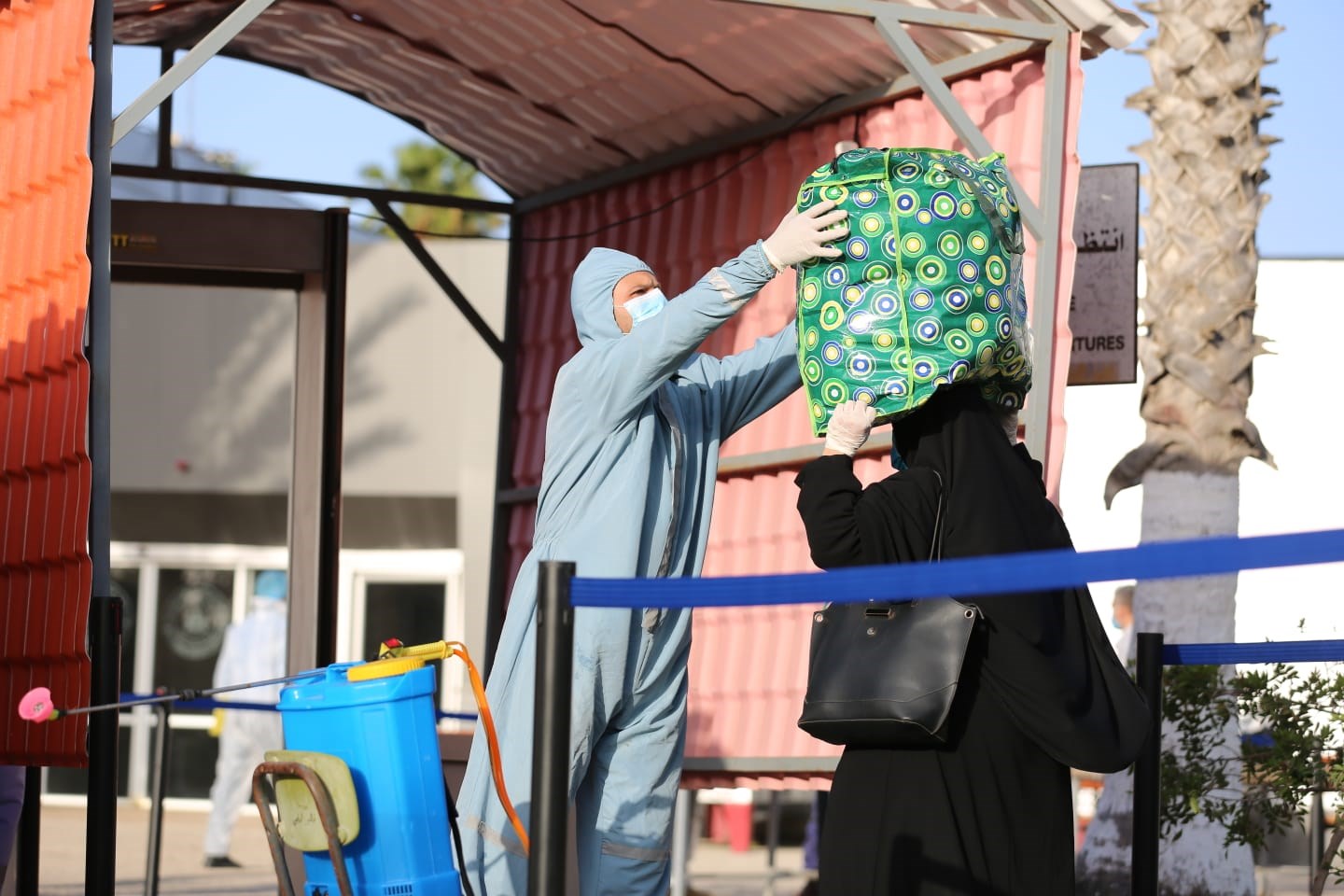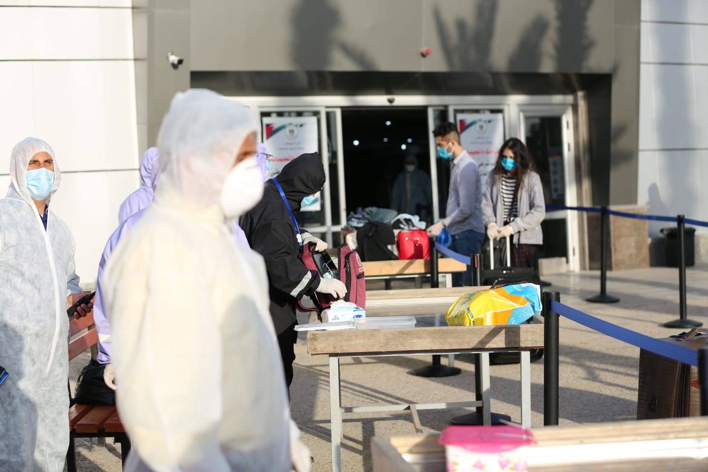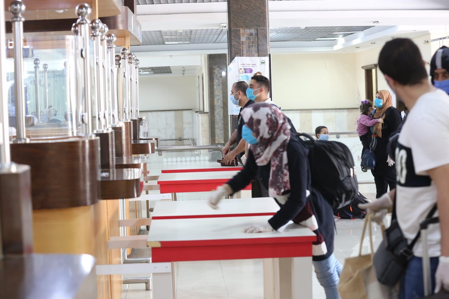 المواطنين العالقين عبر معبر رفح، ونقلهم لمراكز الحجر الصحي وسط إجراءات الوقاية