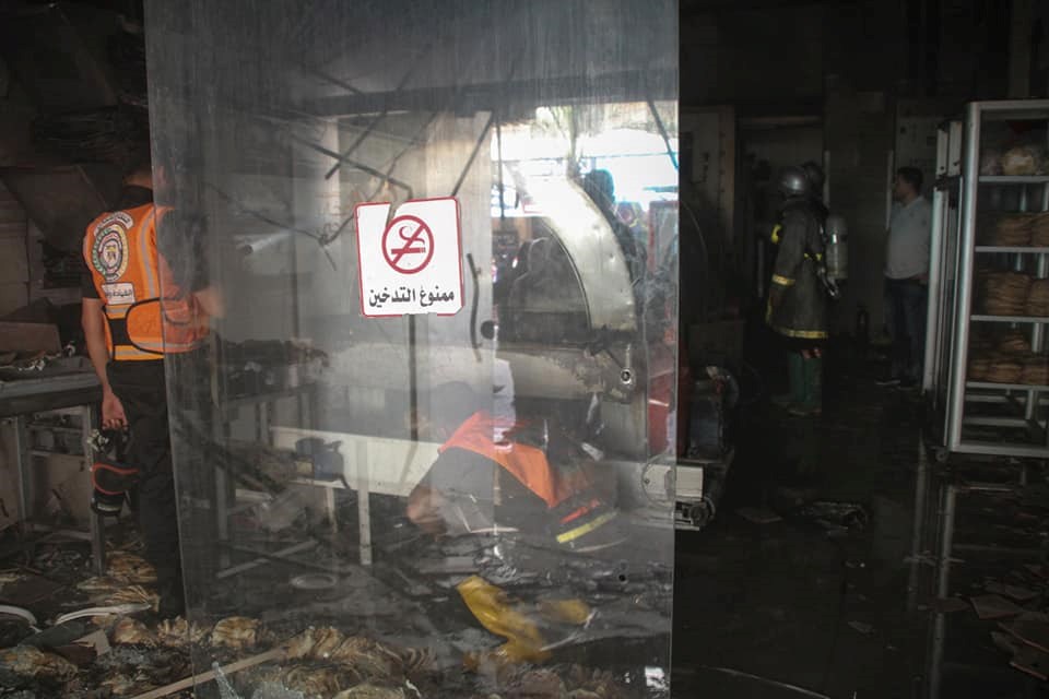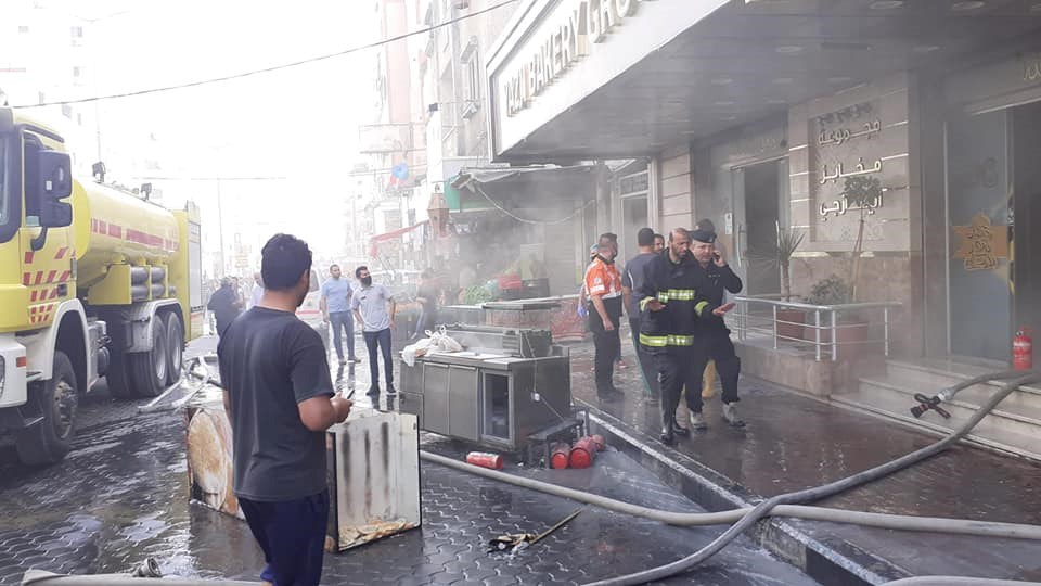 شب في فرن المخبز وتمدد إلى جزء من المعرض، وتمكنت طواقم الإطفاء من تطويق النيران