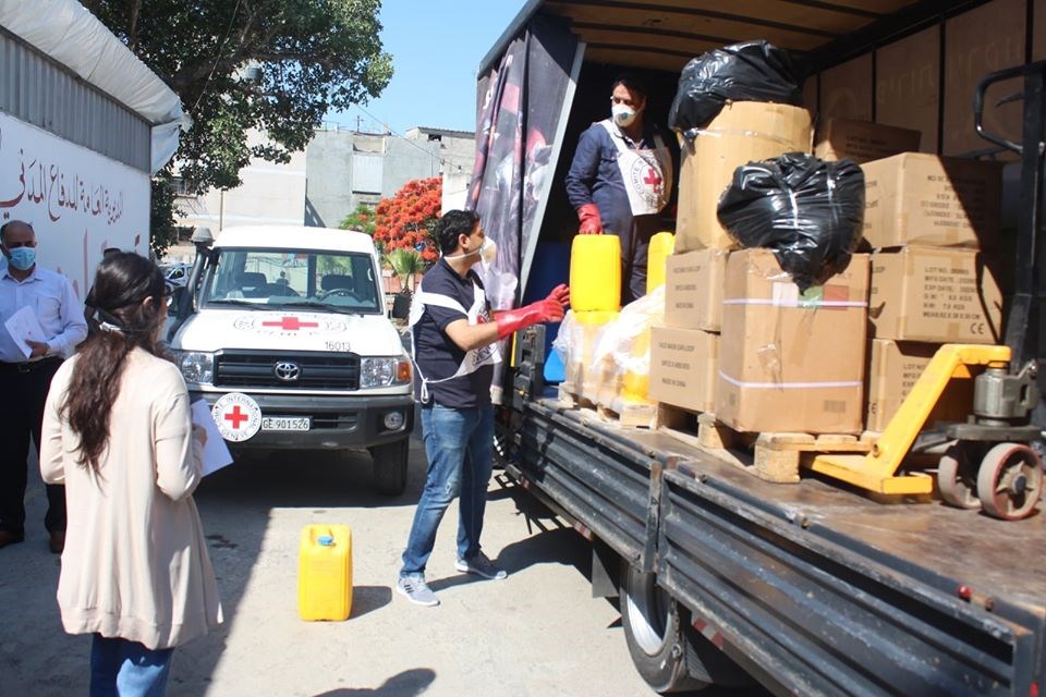 "الصليب الأحمر" مجموعة أدوات خاصة بأطقم الإطفاء، إلى جانب مواد طبية