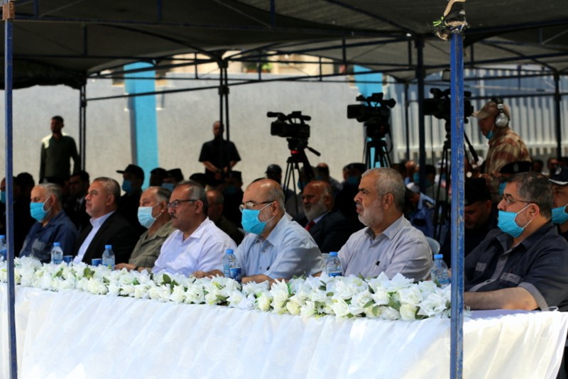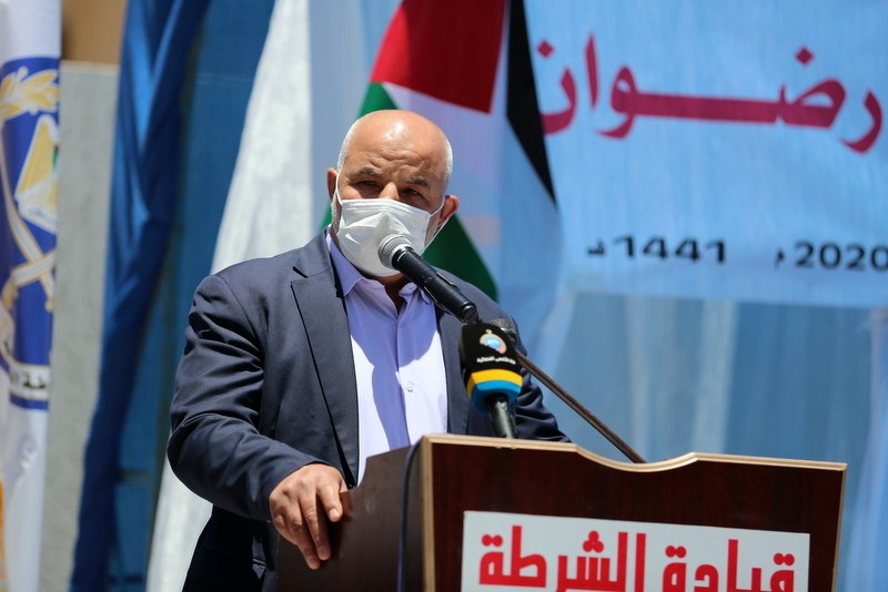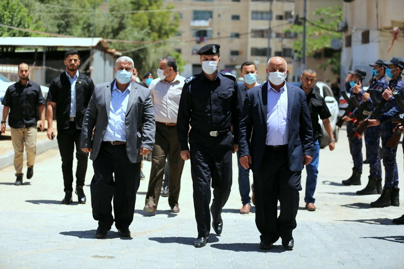 المستشار ضياء المدهون، إلى جانب مدير عام الشرطة اللواء محمود صلاح، وعدد من قادة