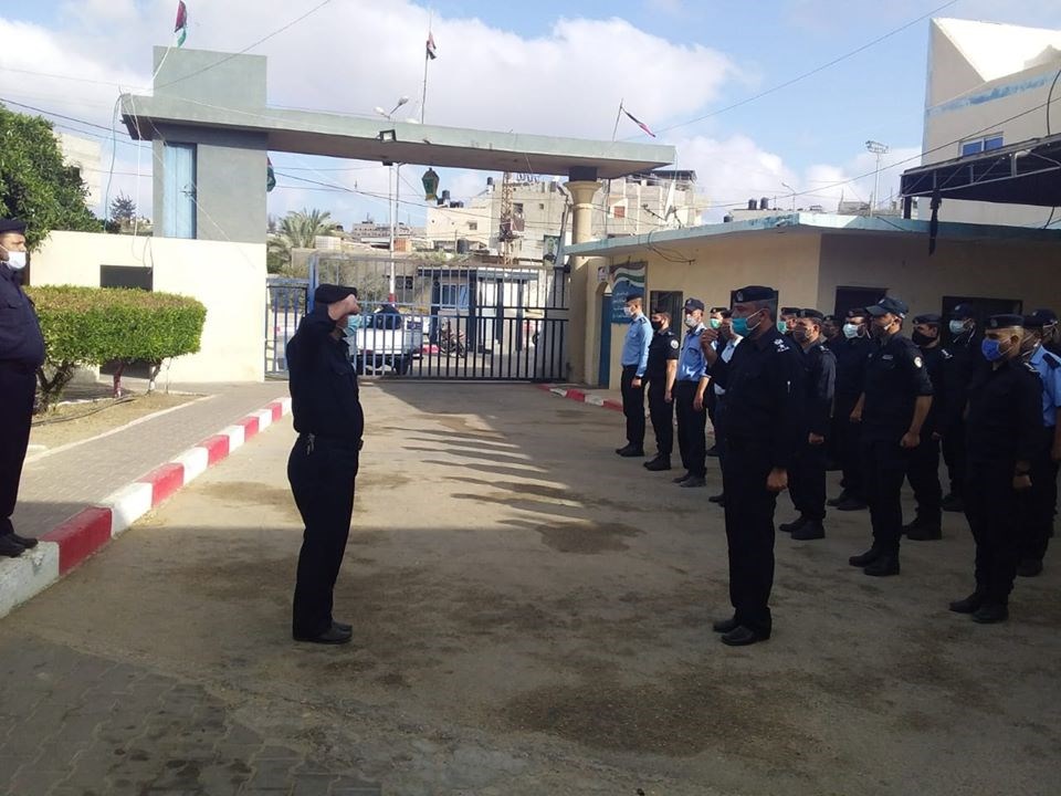 نظم مركز شرطة المدينة في محافظة رفح جنوب قطاع غزة، طابور أركان لجميع ضباط وصف ضباط وعناصر المركز، بحضور المقدم إبراهيم ضهير مدير مركز شرطة المدينة وعدد من الضباط.