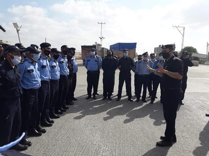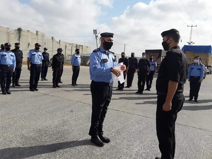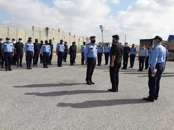 نظمت شرطة معبر كرم أبو سالم، طابور أركان لكافة ضباطها وعناصرها في إحدى ساحات المعبر التجاري جنوب قطاع غزة.