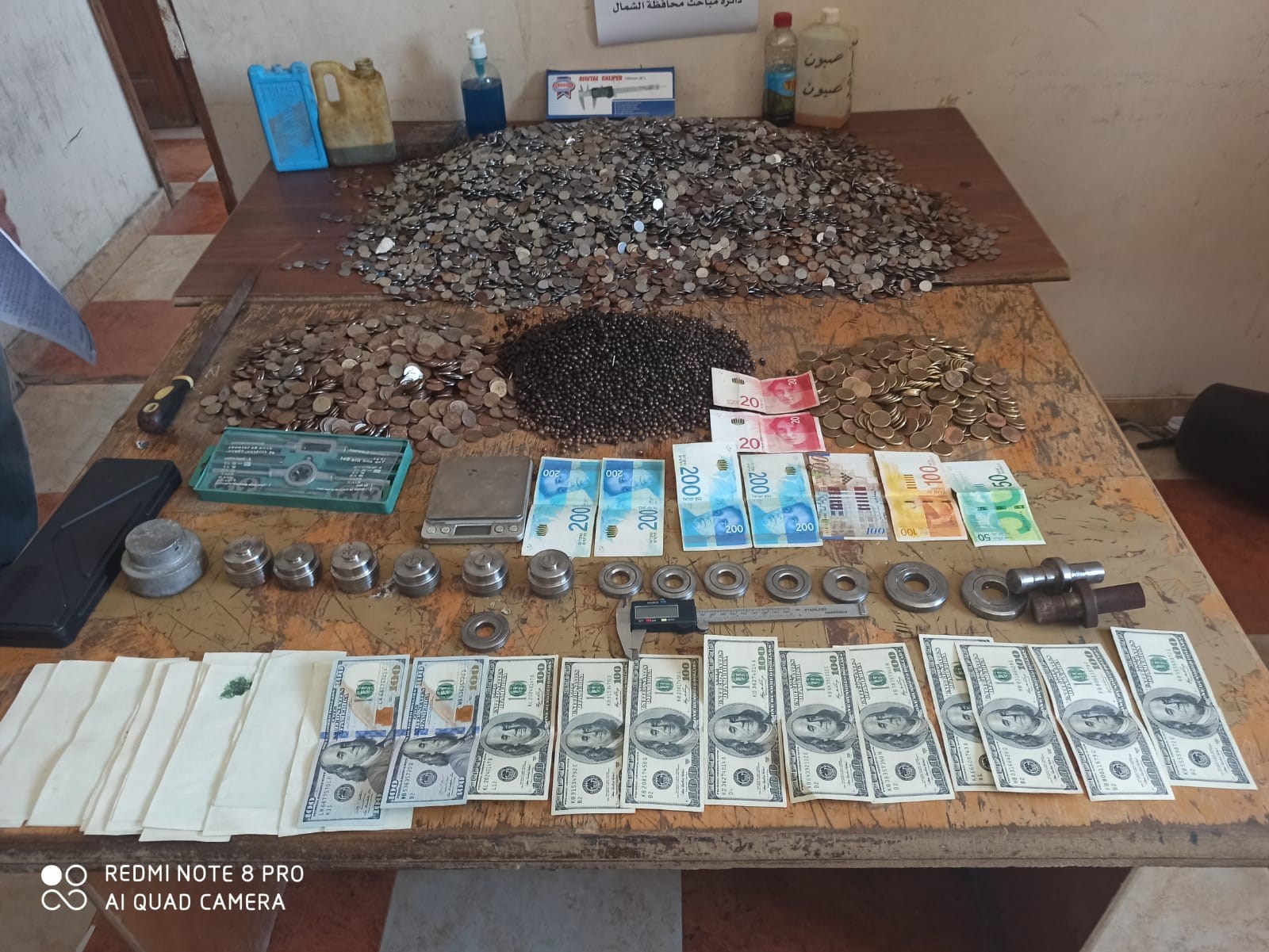 وبيّن أنه تم ضبط قرابة 50 ألف قطعة عملة معدنية مُزورة من فئة (1 شيكل) و(2 شيكل) داخل الورش المذكورة، كانت مُعدة للتداول في السوق المحلية.