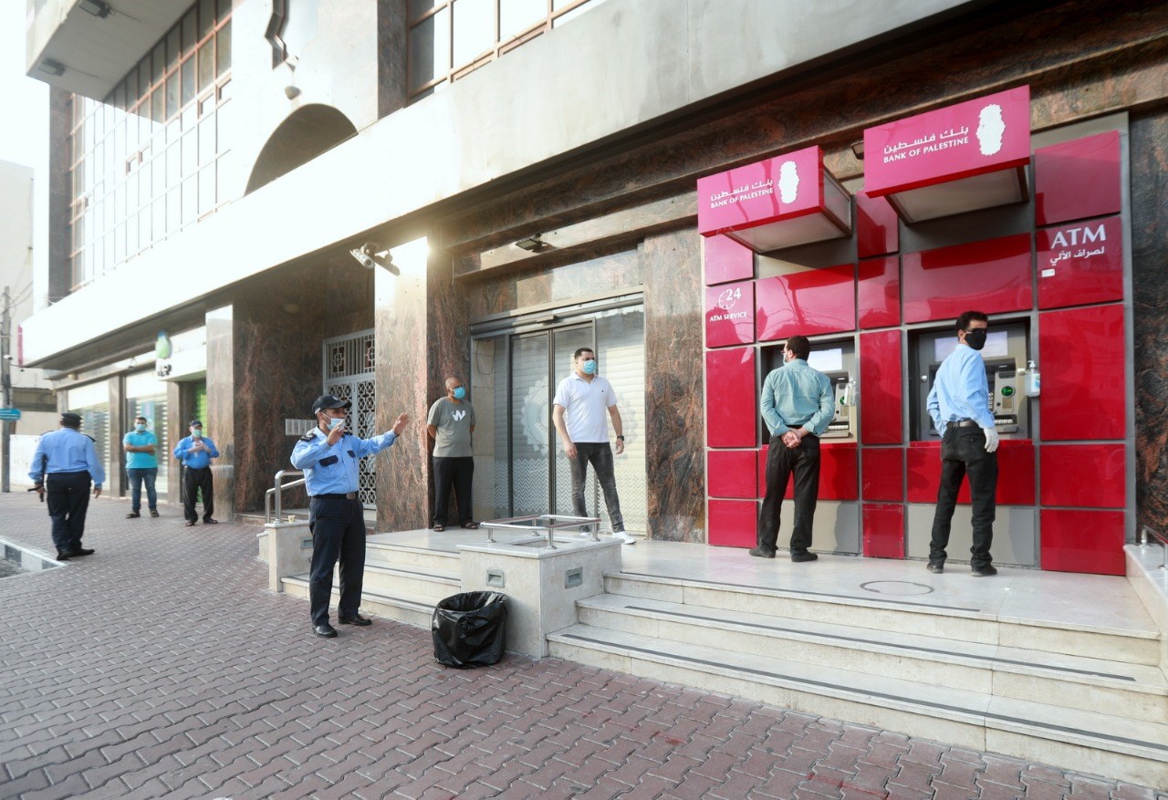 وتأتي إجراءات السلامة والوقاية خلال عملية صرف الرواتب والمخصصات المالية في ظل استمرار حظر التجول في محافظات قطاع غزة لمواجهة فيروس "كورونا".