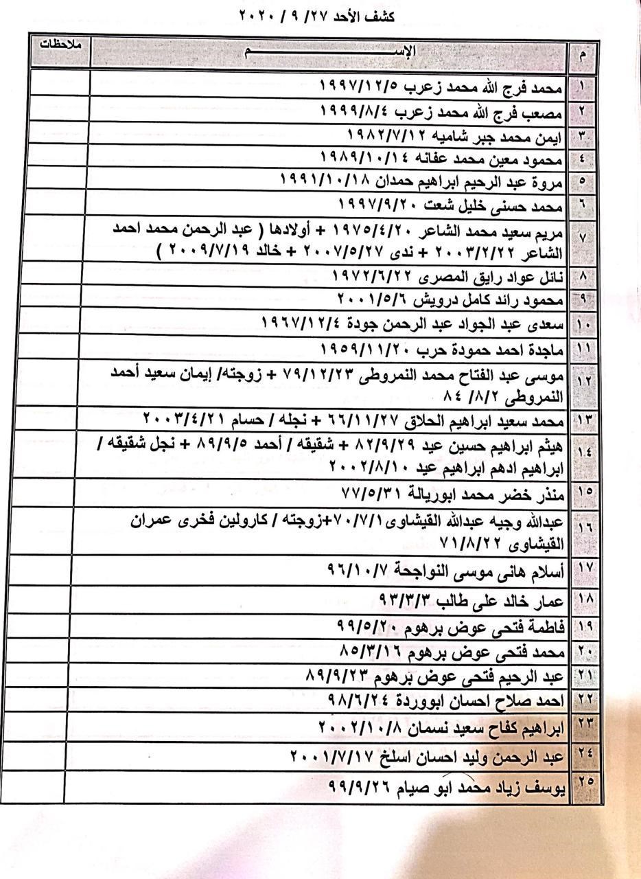 تعلن الهيئة العامة للمعابر والحدود بوزارة الداخلية والأمن الوطني عن وصول كشف "التنسيقات المصرية" من قبل الجانب المصري، والمقرر مغادرتهم عبر معبر رفح بعد غدٍ الأحد 27 سبتمبر 2020، والذين عليهم إجراء الفحص الطبي الخاص بفيروس كورونا اليوم الجمعة، وفق الملاحظات الآتية: