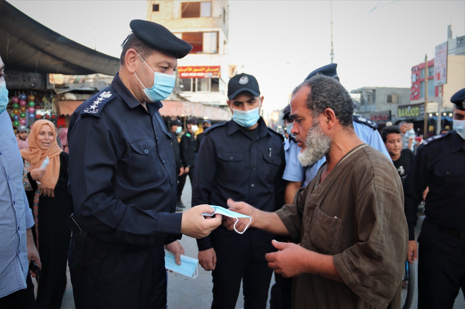 نظمت قيادة وزارة الداخلية والأمن الوطني، عصر السبت، جولات تفقدية وتوعوية ميدانية للمواطنين بأهمية اتخاذ إجراءات الوقاية والسلامة وارتداء الكمامة، في ظل انتشار فيروس كورونا في قطاع غزة.