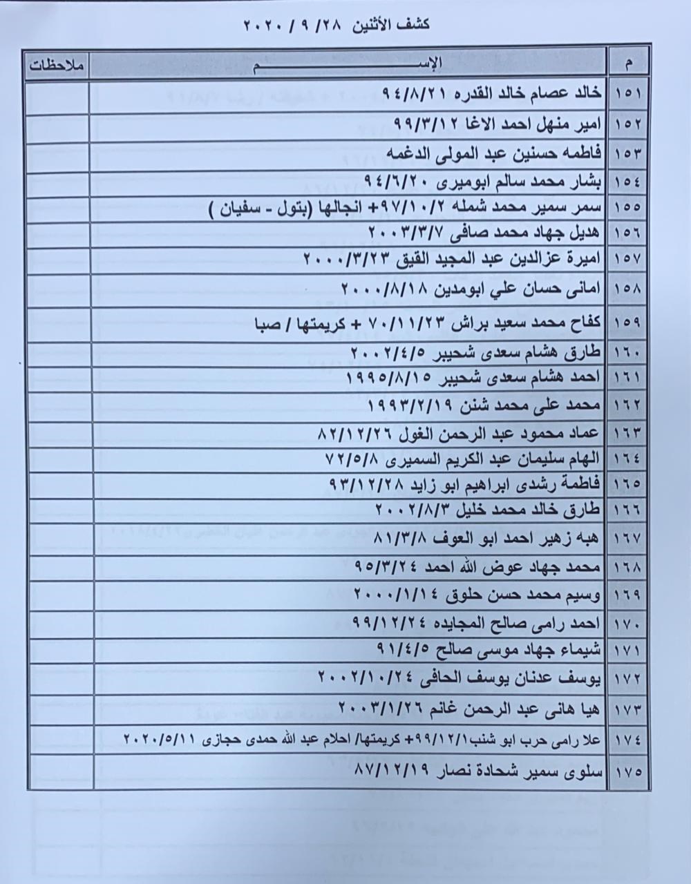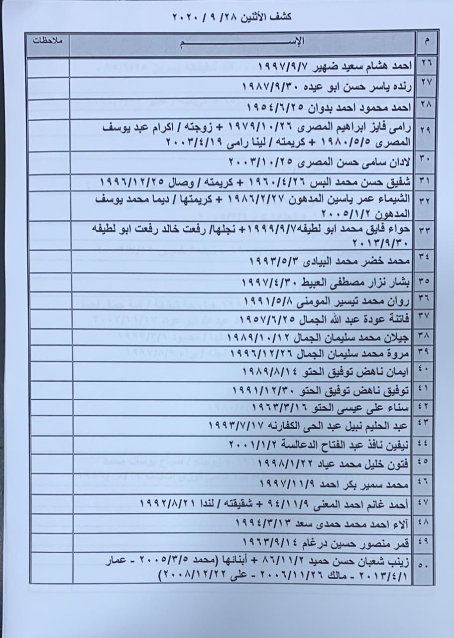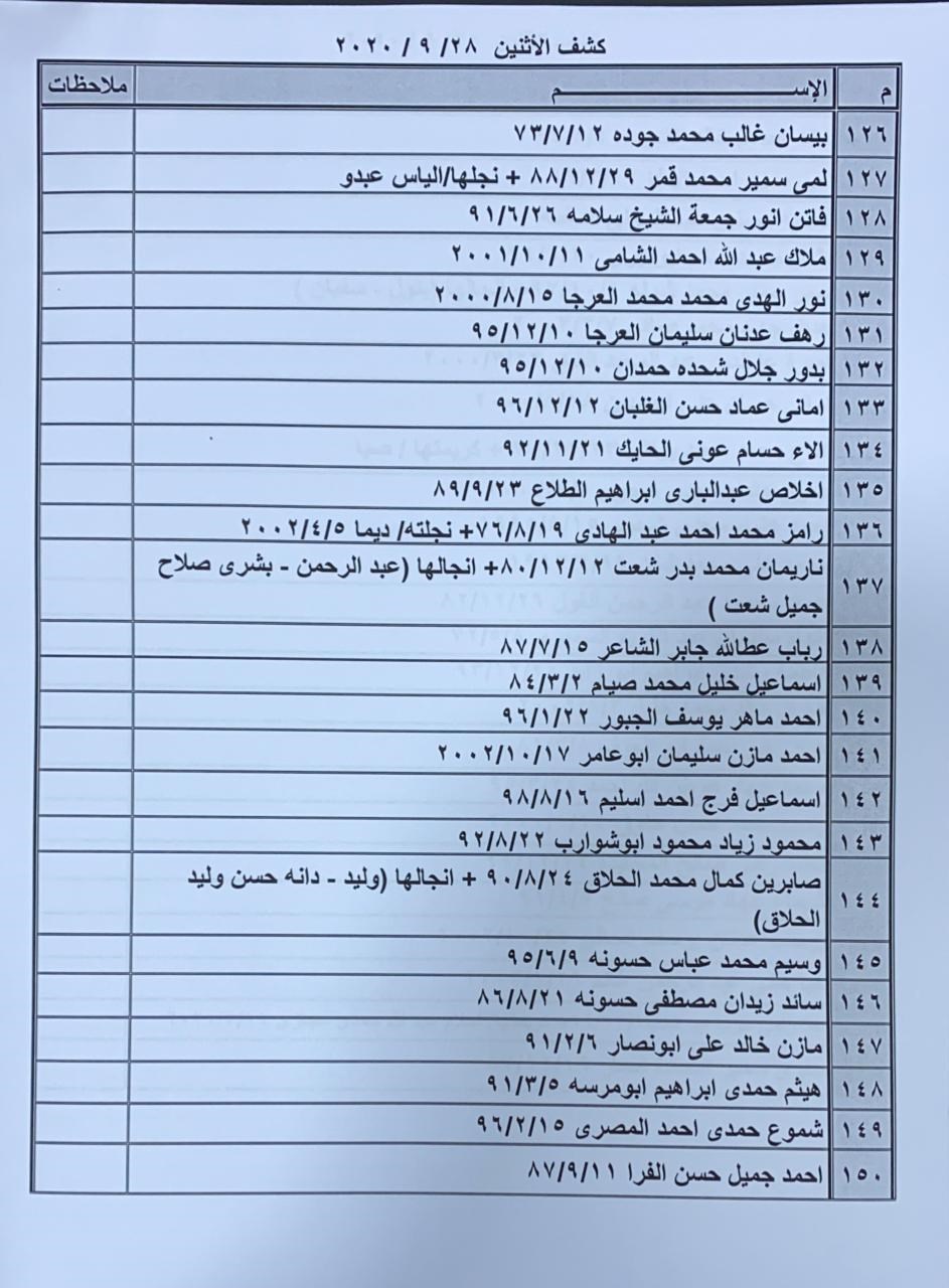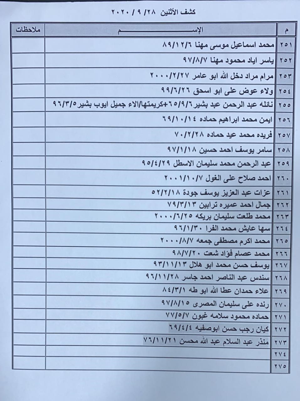 تعلن الهيئة العامة للمعابر والحدود بوزارة الداخلية والأمن الوطني عن وصول كشف جديد أصحاب "التنسيقات المصرية" من قبل الجانب المصري، المقرر سفرهم عبر معبر رفح يوم الإثنين 28 سبتمبر 2020، والذين عليهم إجراء الفحص الطبي الخاص بفيروس كورونا يوم غدٍ الأحد، وفق الملاحظات الآتية:
