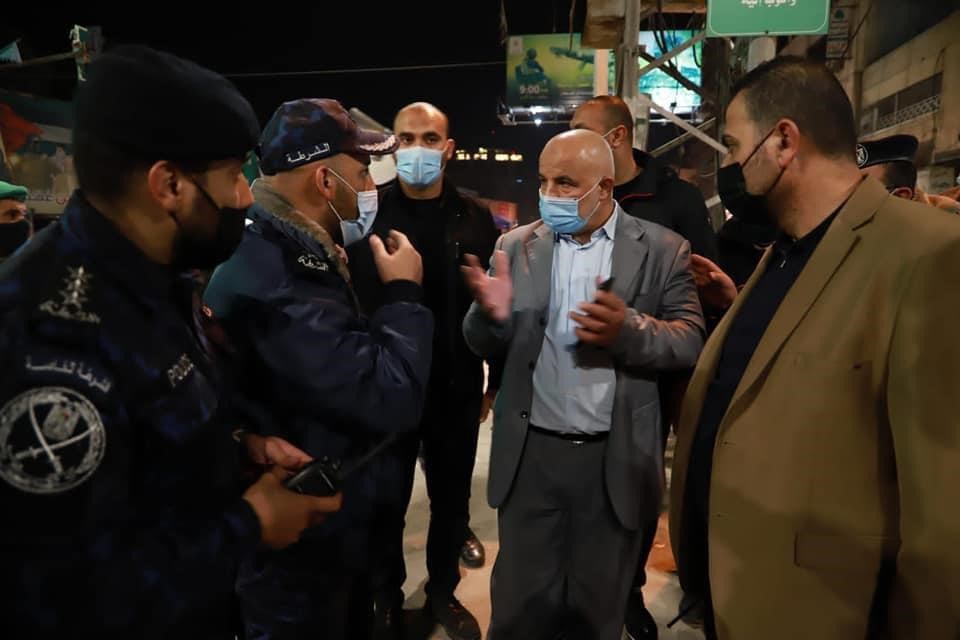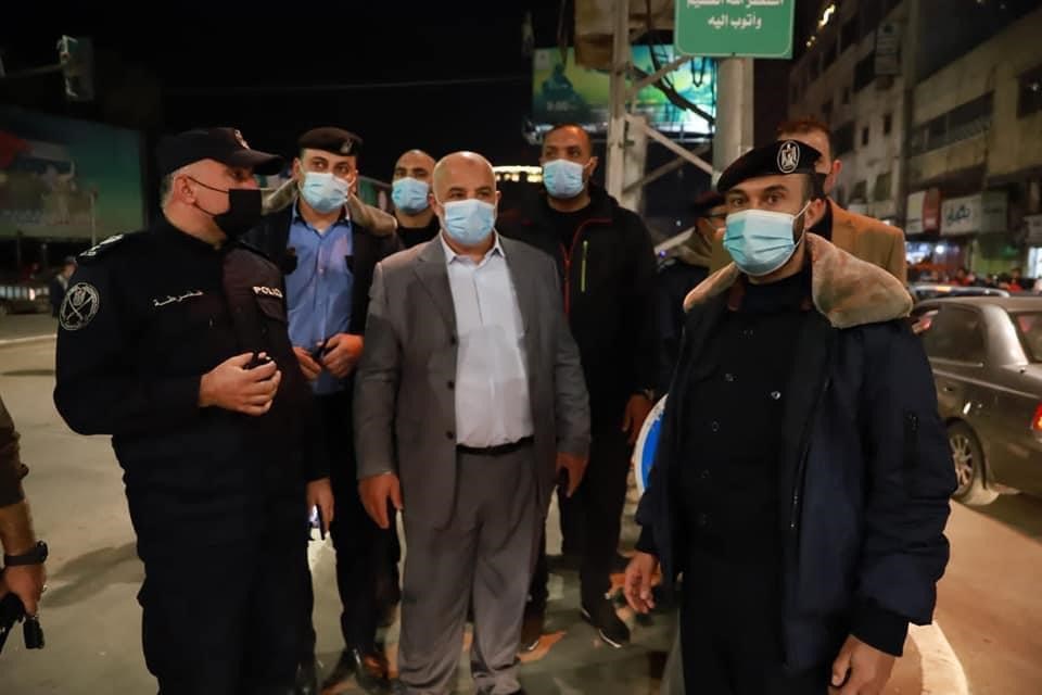 تفقد وكيل وزارة الداخلية والأمن الوطني اللواء توفيق أبو نعيم إجراءات الأجهزة الشرطية والأمنية مساء اليوم الخميس قبيل بدء الإغلاق الكلي الأسبوعي يومي الجمعة والسبت للأسبوع الرابع للحد من انتشار فيروس كورونا.