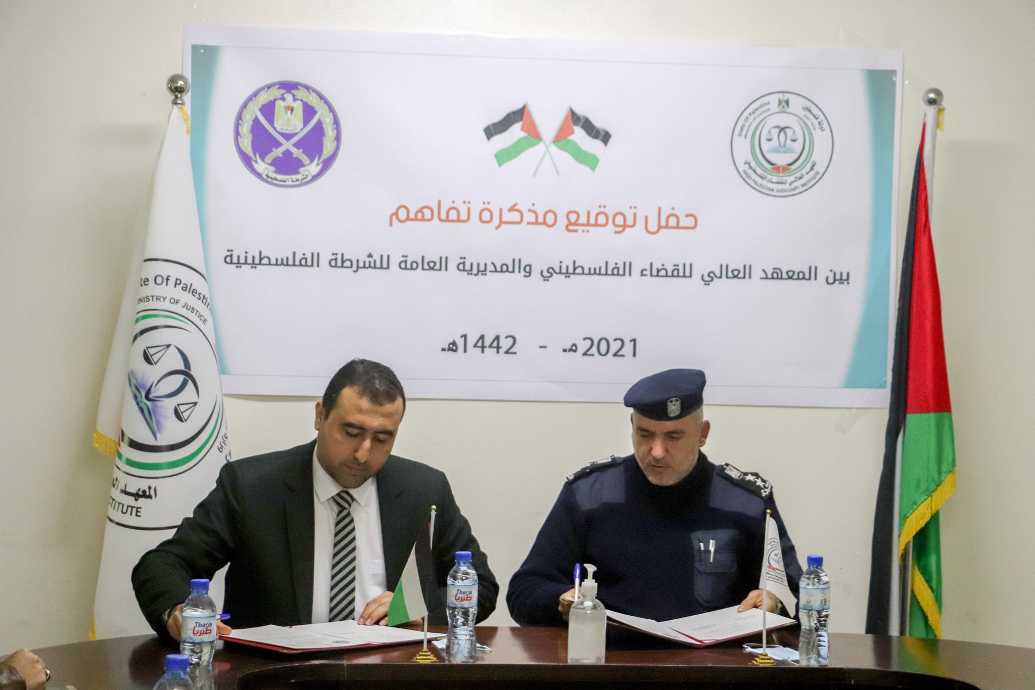 وقعّت المديرية العامة للشرطة الفلسطينية بمدينة غزة، مساء أمس الاثنين، مذكرة تفاهمٍ وتعاونٍ مع المعهد الأعلى للقضاء الفلسطيني، بهدف تأهيل وتطوير كادر الضباط الحقوقيين العاملين بأقسام التحقيق بمراكز المحافظات من منتسبي الشرطة.