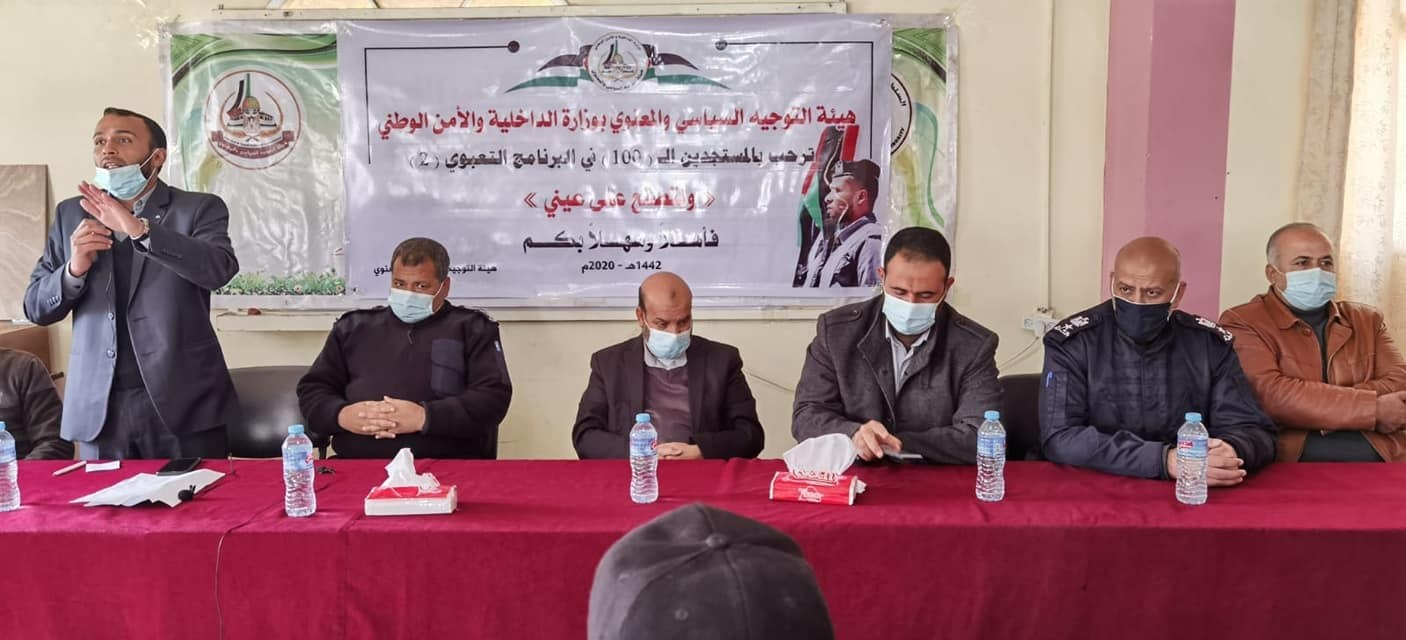 افتتحت هيئة التوجيه السياسي والمعنوي بوزارة الداخلية والأمن الوطني، برنامجًا تعبويًا، بعنوان "ولتصنع على عيني2"، لدفعة المستجدين في قوى الأمن الفلسطينية.
