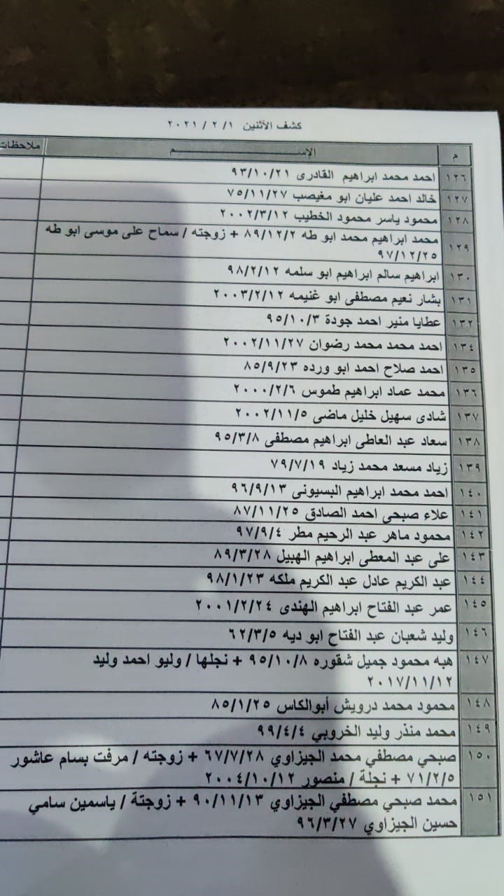 - مرفق كشف تنسيقات مصرية للسفر يوم غد الإثنين، حيث عليهم التوجه لإجراء فحص كورونا الساعة 7:00 صباح الغد في المراكز التي تم الإعلان عنها، مع استبدال عيادة النصيرات في المحافظة الوسطى بعيادة البريج القديمة.