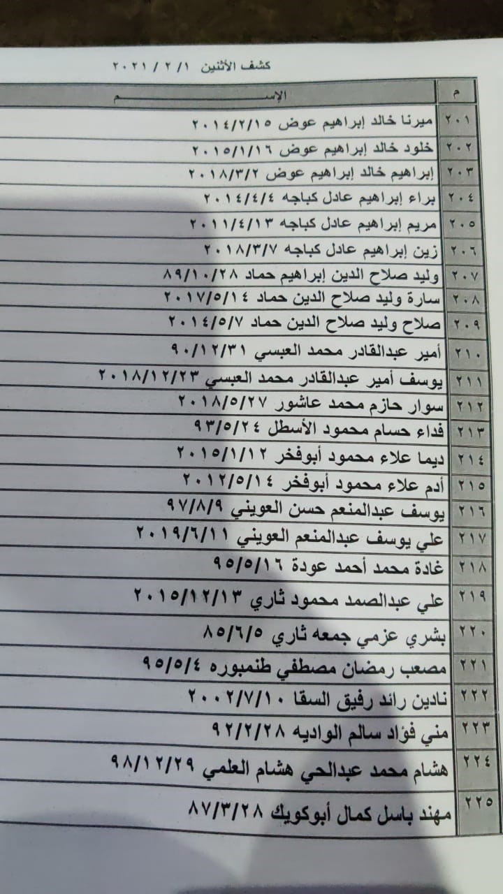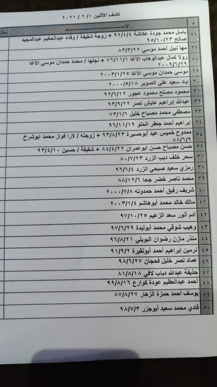 تعلن الهيئة العامة للمعابر والحدود بوزارة الداخلية والأمن الوطني عن موعد إجراء فحص كورونا للمسافرين في كشف التنسيقات يوم غد الإثنين، بالإضافة إلى المسافرين في الحافلات (من السادسة إلى العاشرة) من الكشف رقم (1) المنشور صباح اليوم، وذلك على النحو الآتي: