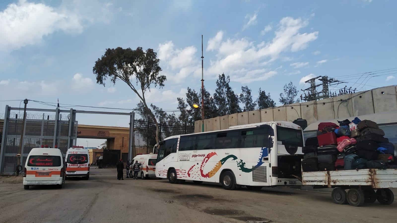 وتتواصل مغادرة حافلات المسافرين باتجاه الجانب المصري من المعبر، في انتظار بدء وصول العائدين مع ساعات الظهر.