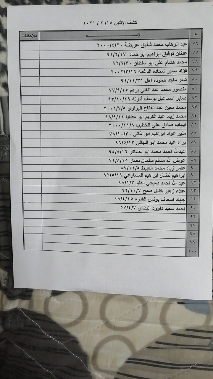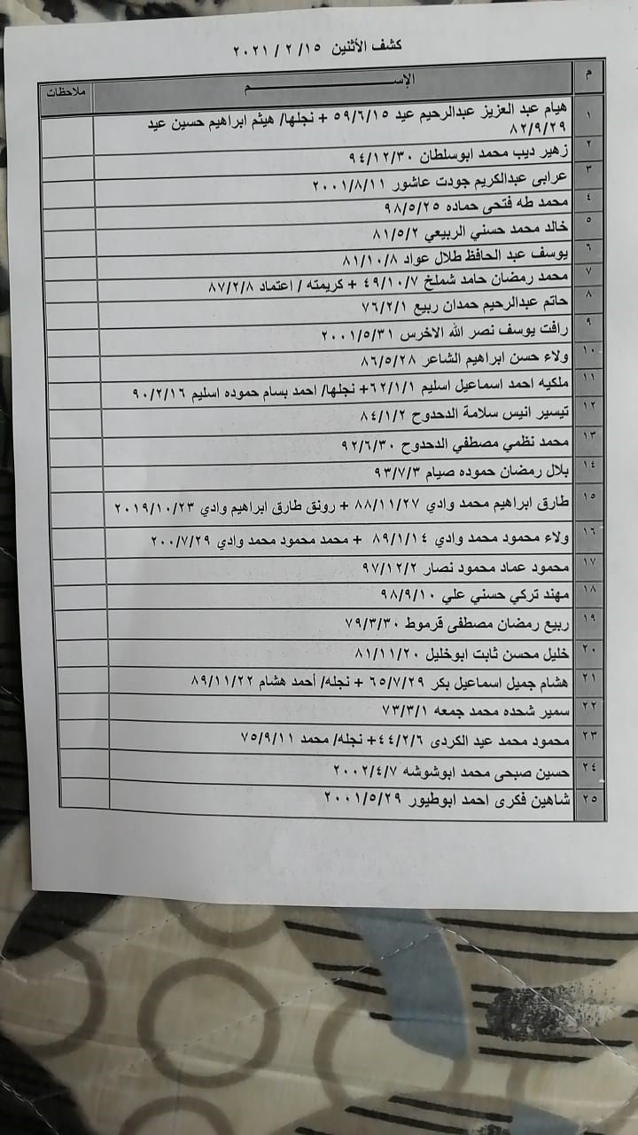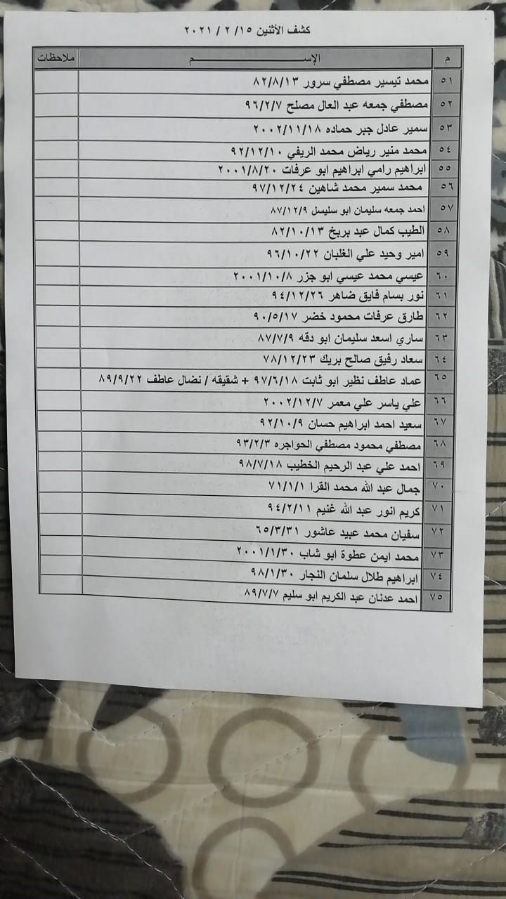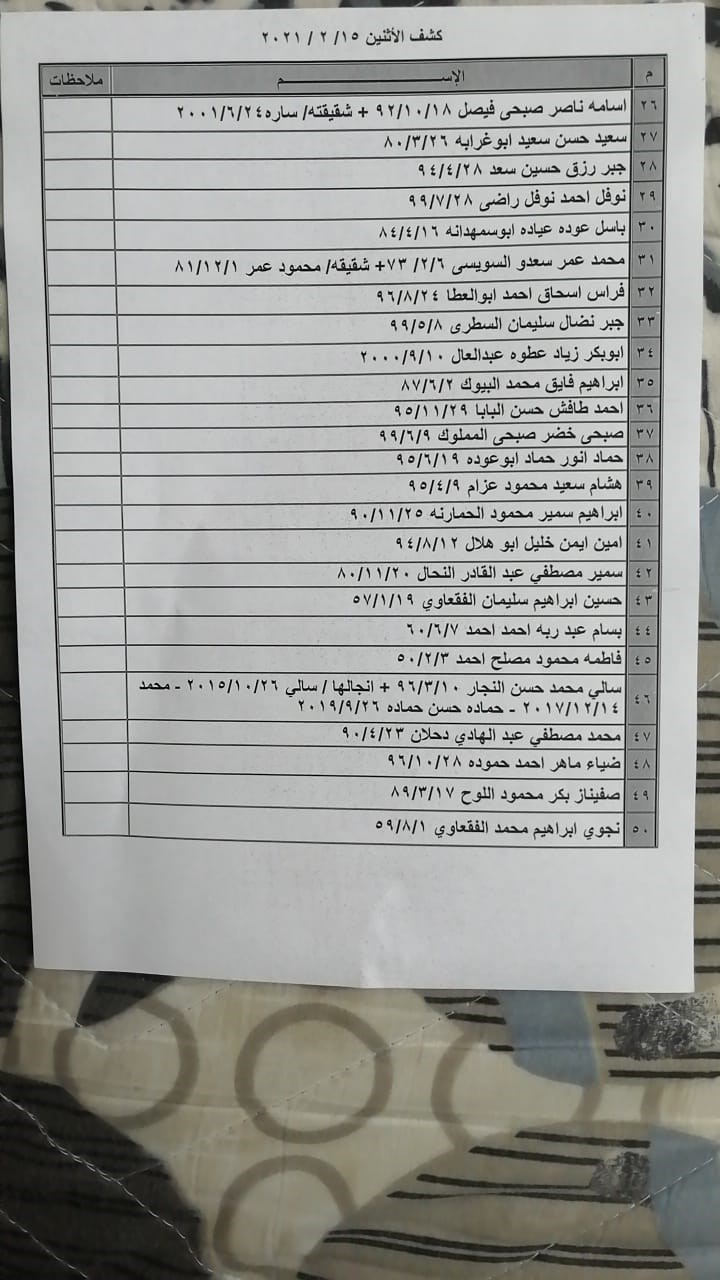 كما وأعلنت الهيئة عن وصول كشف "تنسيقات مصرية" للسفر عبر معبر رفح البري يوم الإثنين (15 فبراير)، والذين عليهم التوجه لإجراء فحص كورونا بدءاً من الساعة 9 صباح غد الأحد في المراكز الصحية المعلن عنها سابقاً كلّ في محافظته.