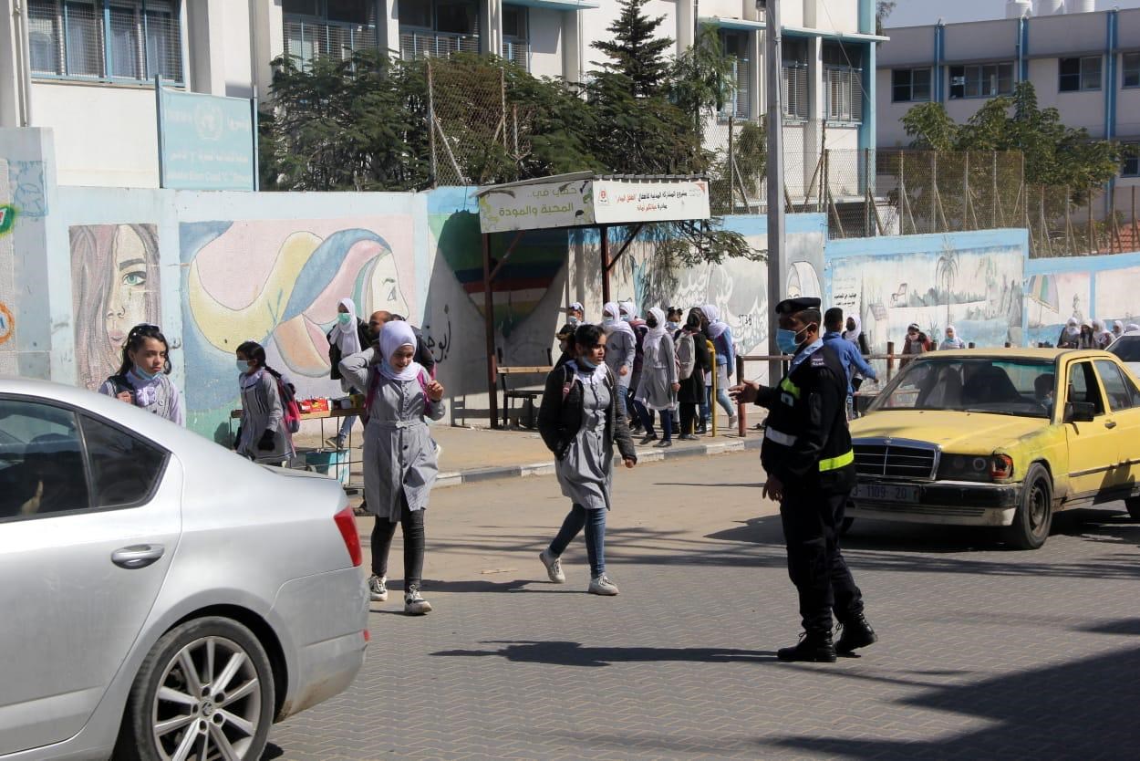 انتشرت شرطة المرور، صباح اليوم الأحد، لتسهيل الحركة المرورية وتنظيم حركة الطلاب أمام المدارس بكافة محافظات القطاع، بعد قرار عودتهم بدءاً من اليوم.