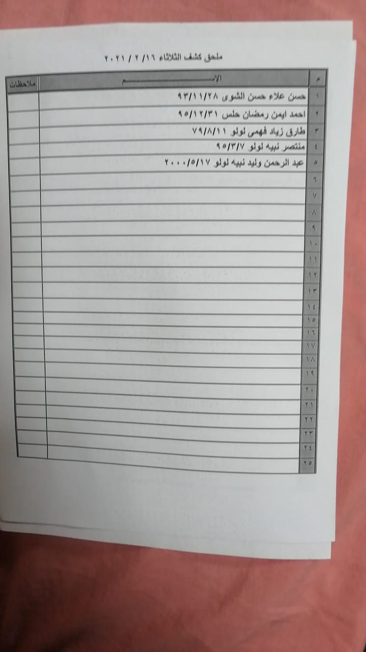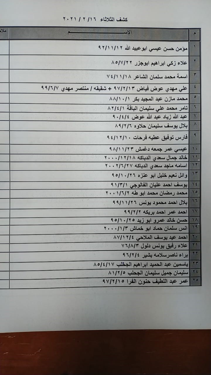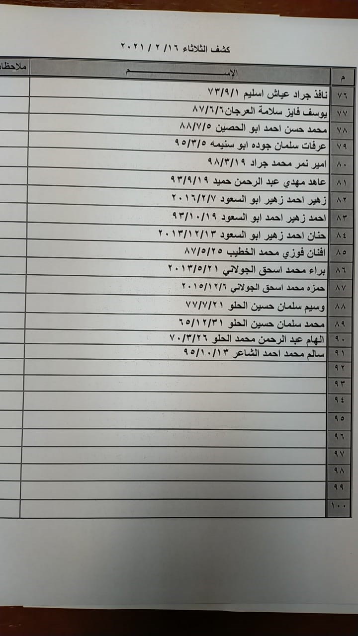 كما على المسافرين المذكورة أسماؤهم في الكشف المرفق التواجد الساعة 6 صباح الثلاثاء في الصالة الخارجية للمعبر؛ من أجل تسهيل سفرهم.