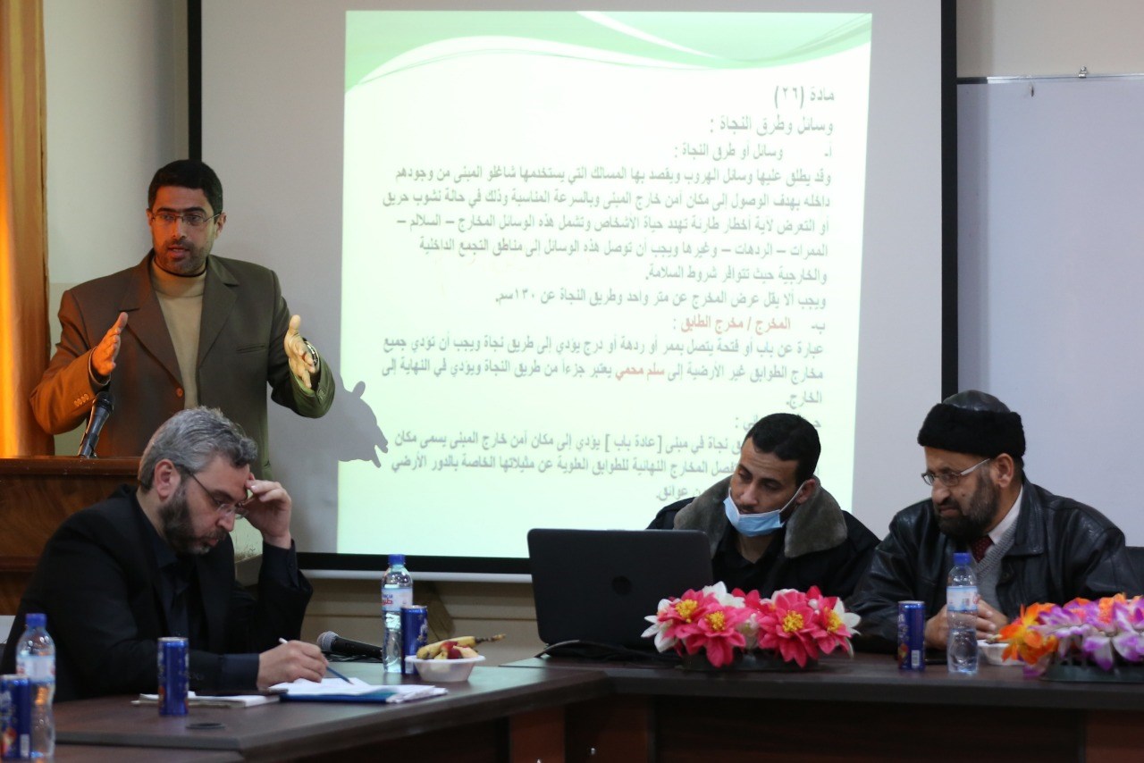 وفي ذات السياق، عرض م. إياد عبيد مدير الدائرة الهندسية في الدفاع المدني أهم الأكواد العالمية والعربية للسلامة والوقاية، ومعايير إنشاء المباني المرتفعة مشيرا إلى أهمية درج الهروب والمخارج المطلوبة لحماية السكان من مخاطر الأدخنة والغازات السامة والحرارة في حال الحريق.