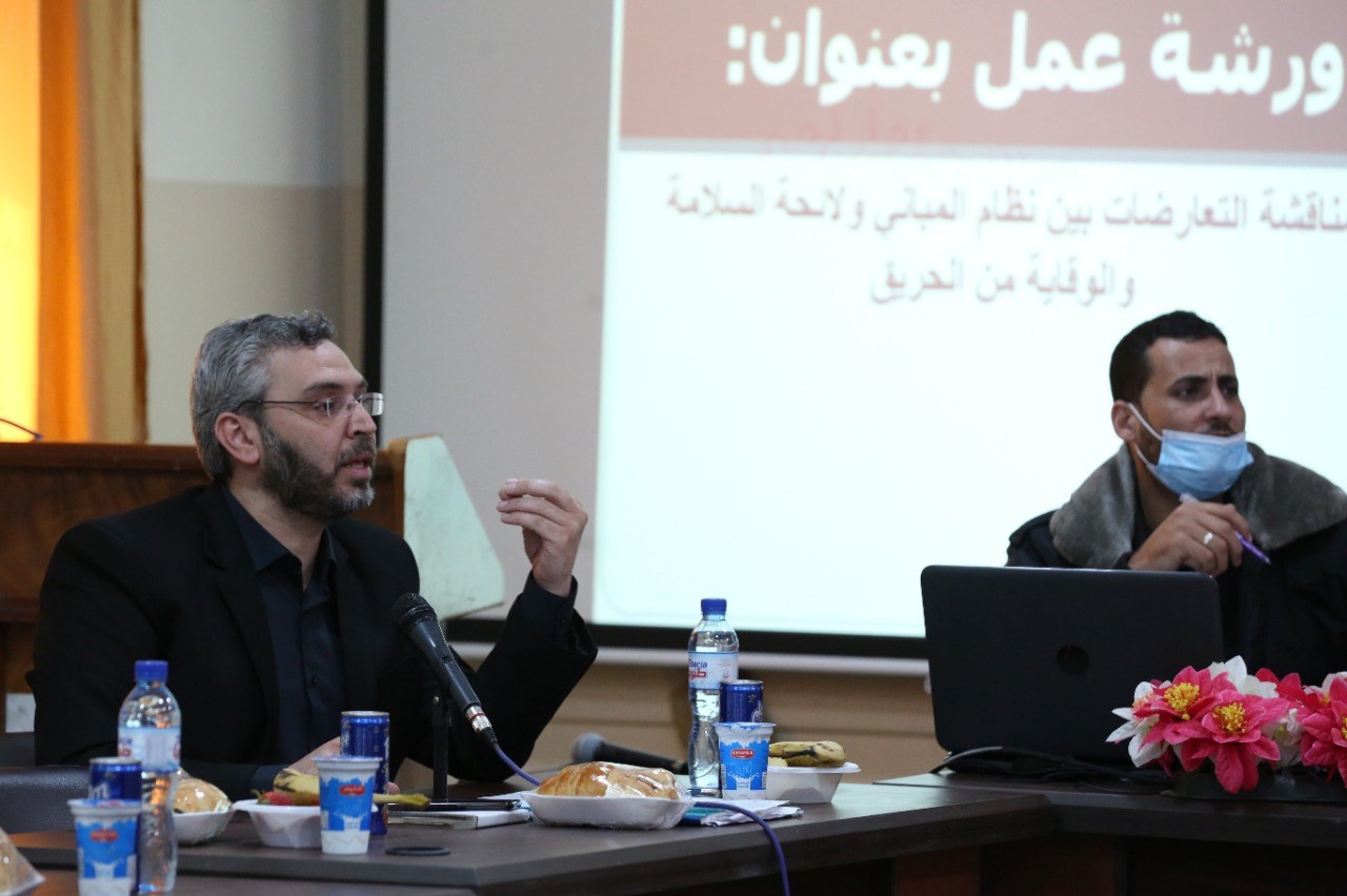 وناقشت الورشة مقترحات لحل التعارضات بين نظام المباني (2020) ولائحة السلامة والوقاية من الحريق في المباني العالية.