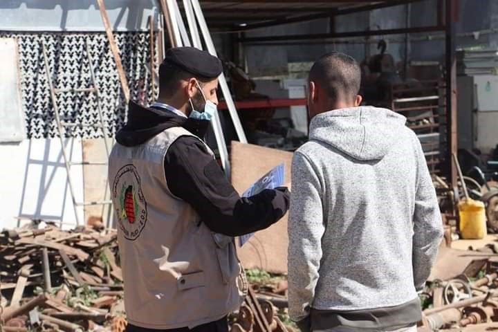 نظمت شرطة هندسة المتفجرات بمحافظة خان يونس نشاطاً توعوياً تخلله توزيع بروشورات مطبوعة على أصحاب محلات جمع الخردة للتوعية من مخاطر جمع ولمس الأجسام المشبوهة والمخلفات الحربية.