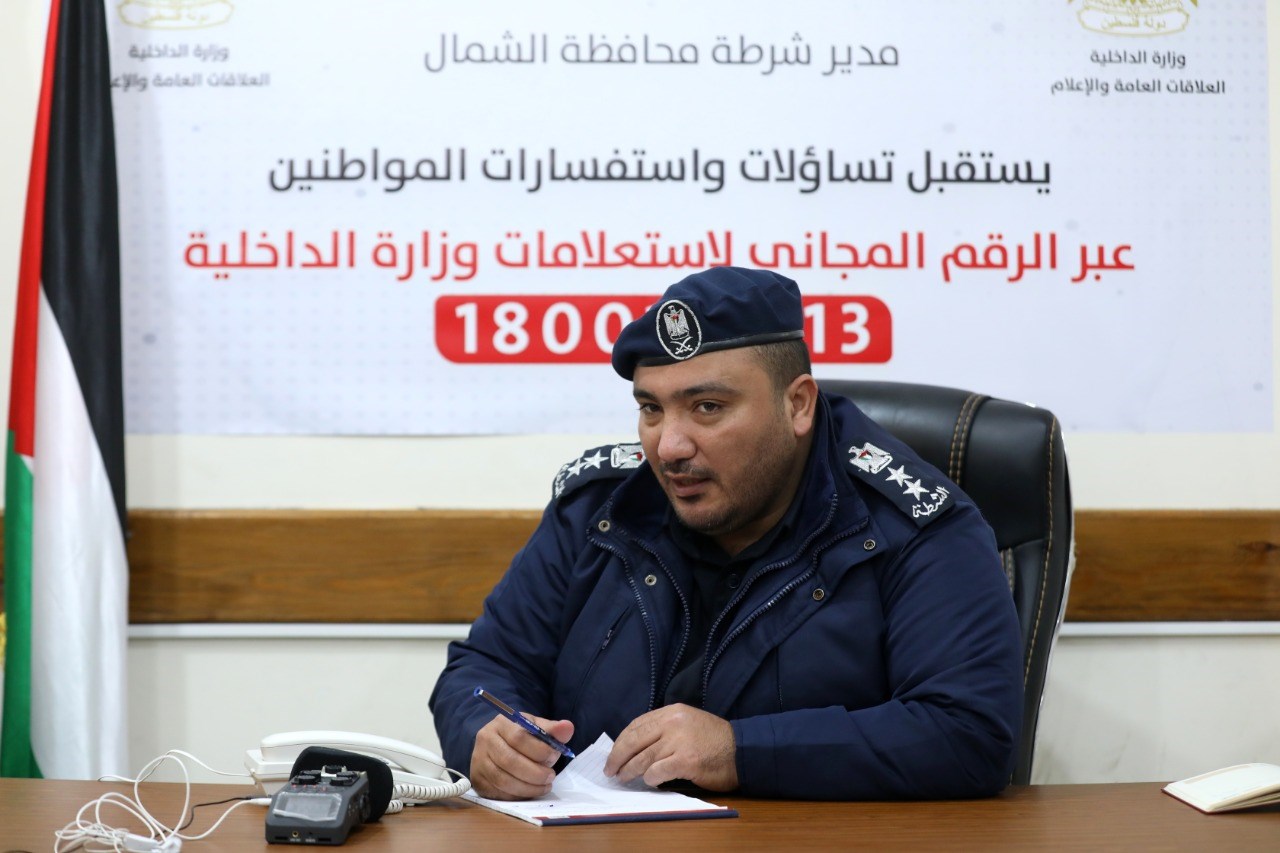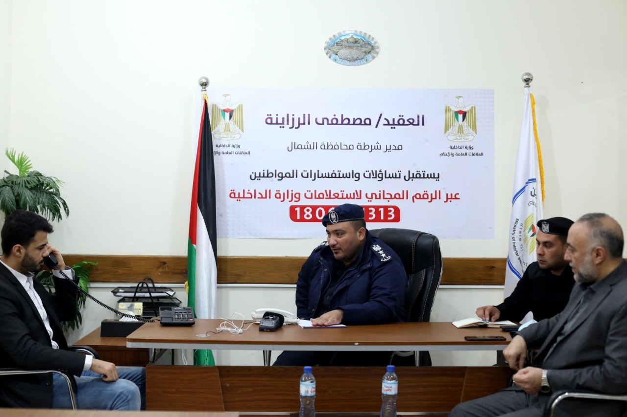 وفي هذا الصدد، تواجد العقيد مصطفى الرزاينة مدير شرطة محافظة شمال غزة، صباح اليوم الثلاثاء، لاستقبال اتصالات المواطنين وتلقي ملاحظاتهم وشكاواهم على مدار ساعتين، ما بين الساعة 10 صباحاً وحتى الساعة 12 ظهراً.