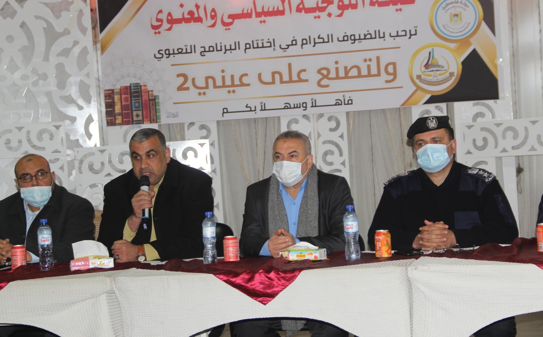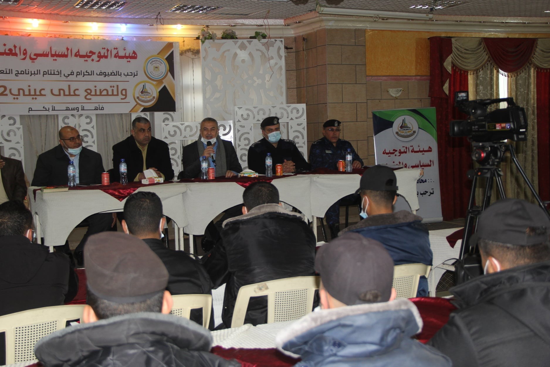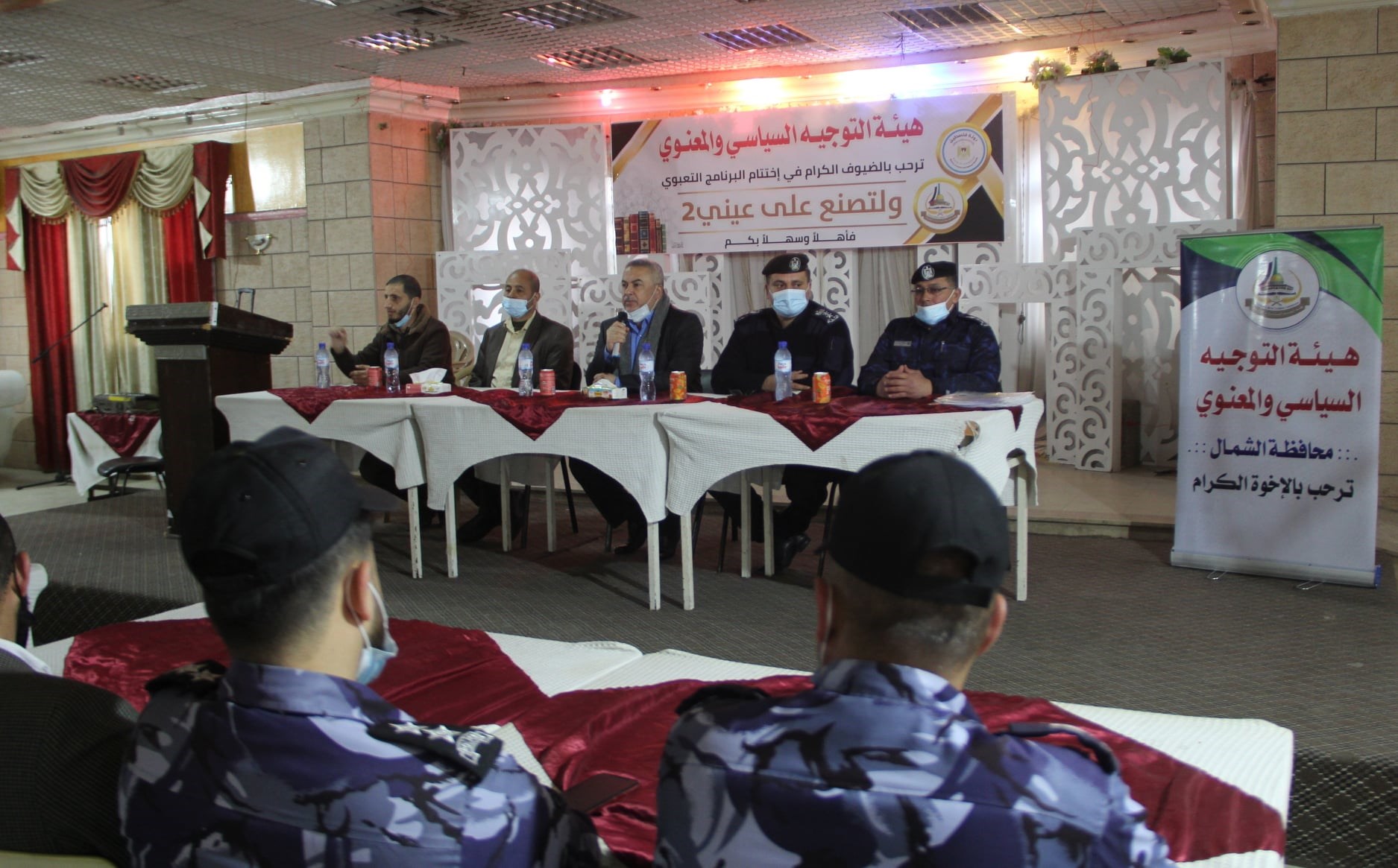 اختتمت هيئة التوجيه السياسي والمعنوي بمحافظة شمال غزة صباح أمس الثلاثاء البرنامج التعبوي "ولتصنع على عيني2" لمنتسبي وزارة الداخلية من المستجدين دفعة 2019 بقاعة السلامة بمنطقة بيت لاهيا شمال غزة.