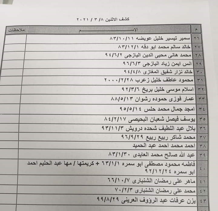 تعلن الهيئة العامة للمعابر والحدود بوزارة الداخلية والأمن الوطني عن وصول كشف "تنسيقات مصرية" للسفر عبر معبر رفح البري يوم الإثنين (8 مارس)، والذين عليهم التوجه لإجراء فحص كورونا بدءاً من الساعة 9 صباح غد الأحد في المراكز الصحية المعلن عنها سابقاً في المحافظات كافة.