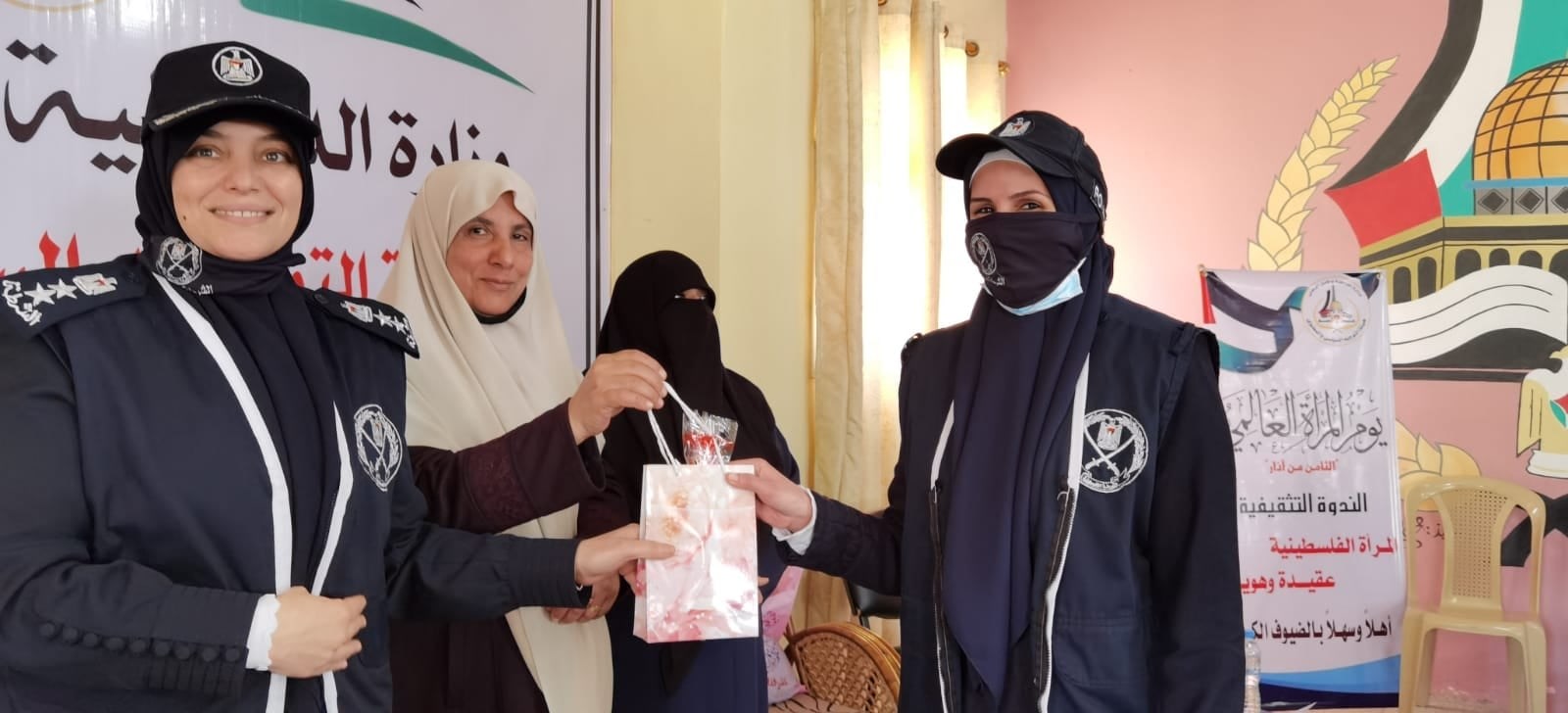 من جانبها، أكدت العقيد عدوان على دور المراة الفلسطينية في العمل الأمني ودورها في كل المجالات بجانب الرجل "فهي الأم والأخت والمربية والأسيرة والشهيدة".