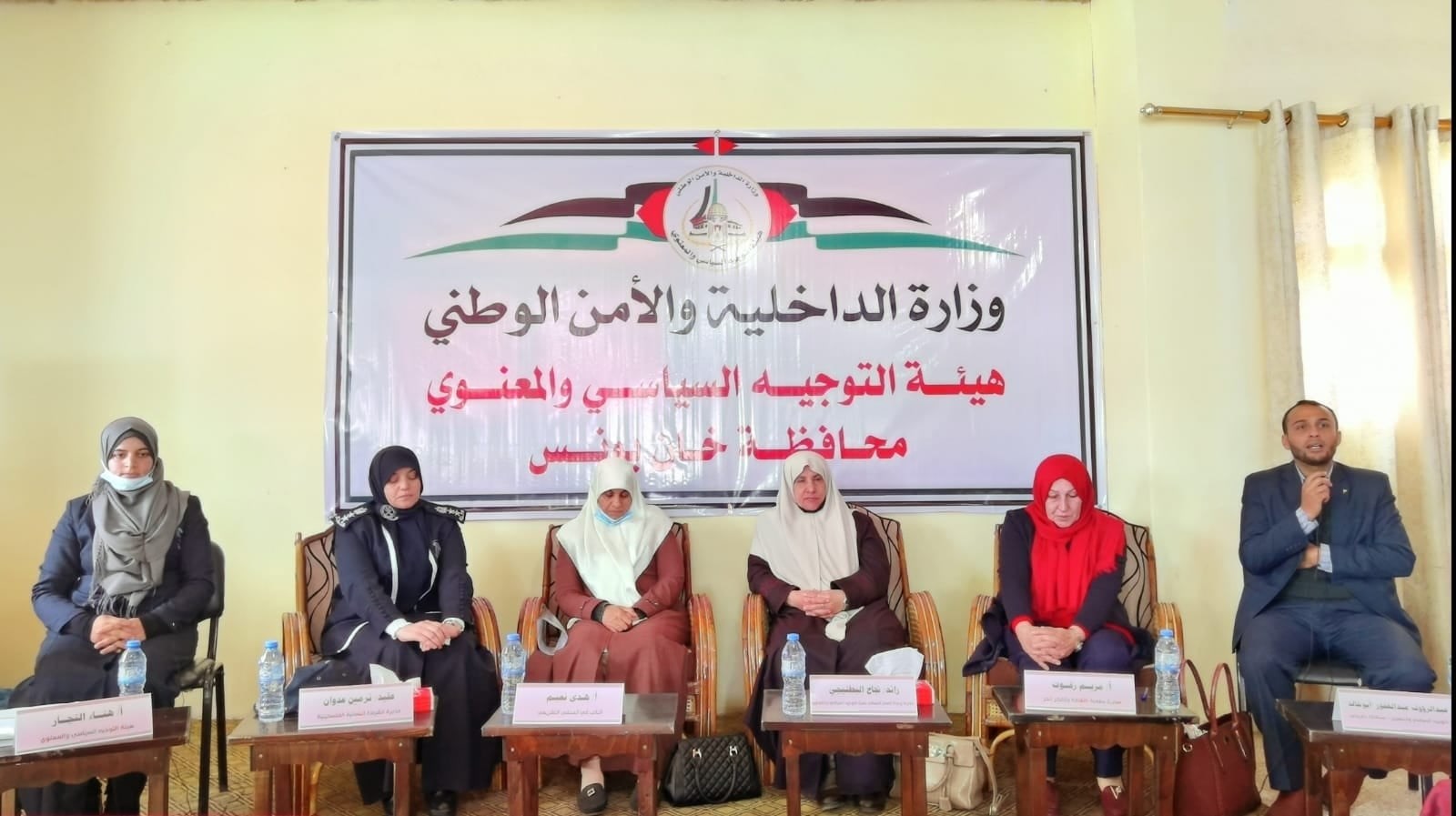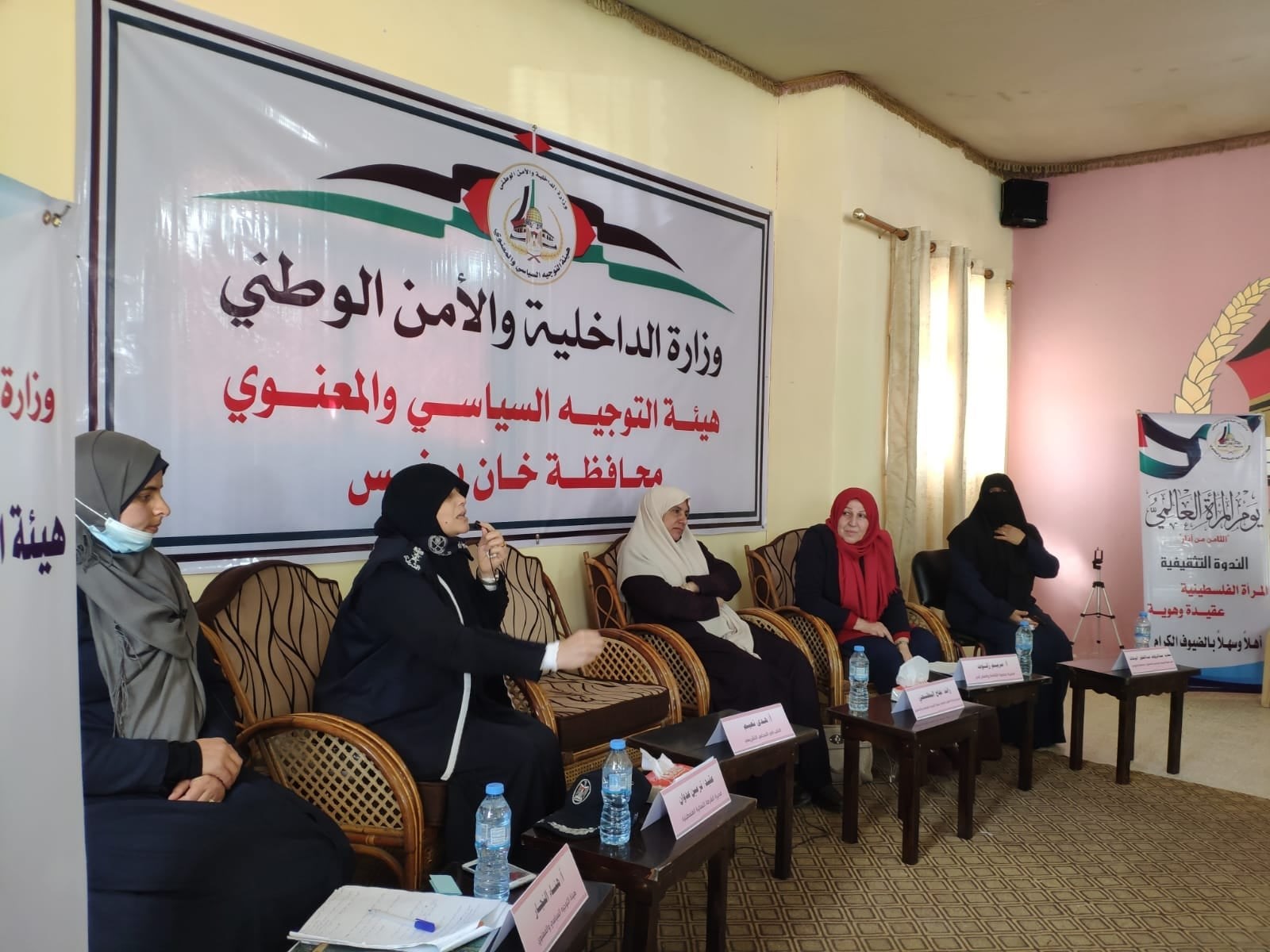 نظمت هيئة التوجيه السياسي والمعنوي بمحافظة خان يونس ندوة حوارية بعنوان المراة الفلسطينية "عقيدة وهوية"، بمناسبة يوم المرأة العالمي، وذلك بحضور النائب في المجلس التشريعي د. هدى نعيم ومديرة الشرطة النسائية عقيد نرمين عدوان والمقدم عبدالرؤوف عبد الغفور مدير الهيئة بالمحافظة.