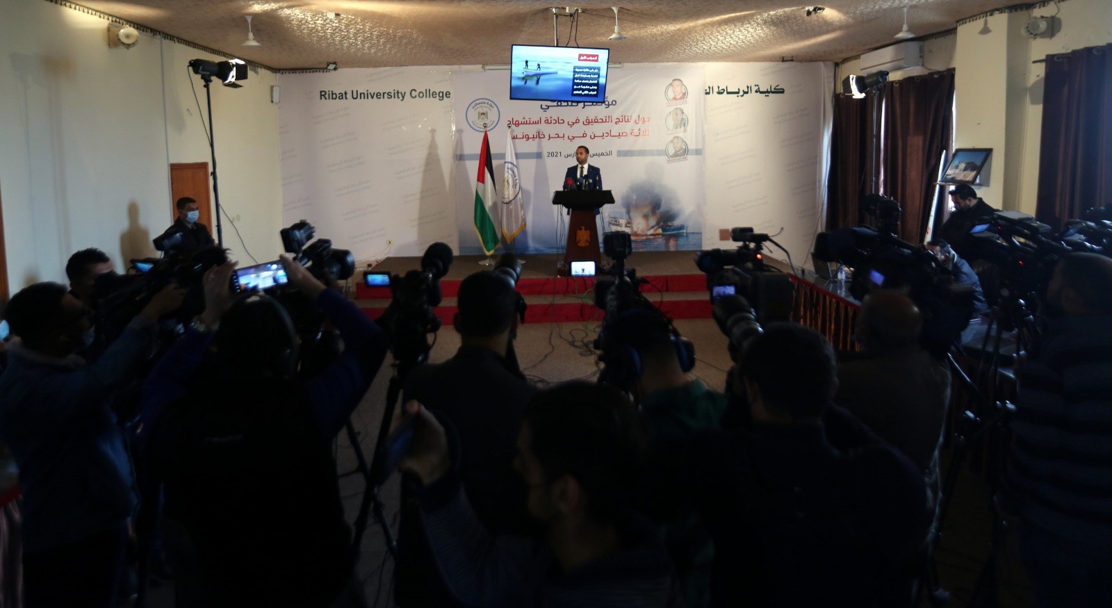 وفي تفصيل المؤتمر، أكد البزم أن قيادة وزارة الداخلية والأمن الوطني تابعت الحادثة منذ وقوعها، وتم تشكيل لجنة من الأجهزة المختصة في وزارة الداخلية، والأجهزة ذات العلاقة في المقاومة الفلسطينية؛ لتقصي الحقائق والوقوف على ظروف استشهاد الصيادين.