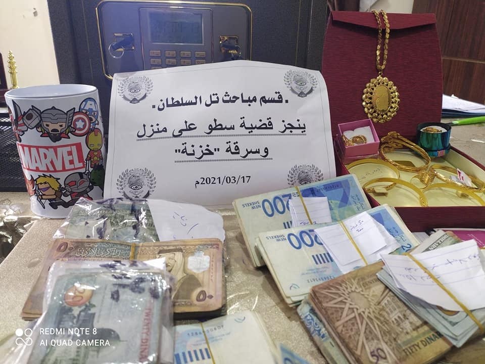 وقال رئيس قسم مباحث تل السلطان إن المباحث تحرزت على الخزنة وكافة المسروقات، وأحالت السارق وملف القضية إلى مفتش تحقيق الشرطة لاستكمال الإجراءات القانونية حسب الأصول.