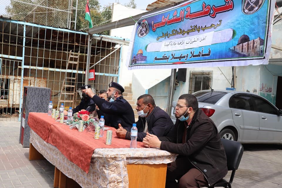 وحضر اللقاء مدير مركز شرطة الشاطئ الرائد طلعت جودة، وممثلين عن لجنة الطوارئ وعدد من التجار وأصحاب المحلات في سوق الشاطئ.