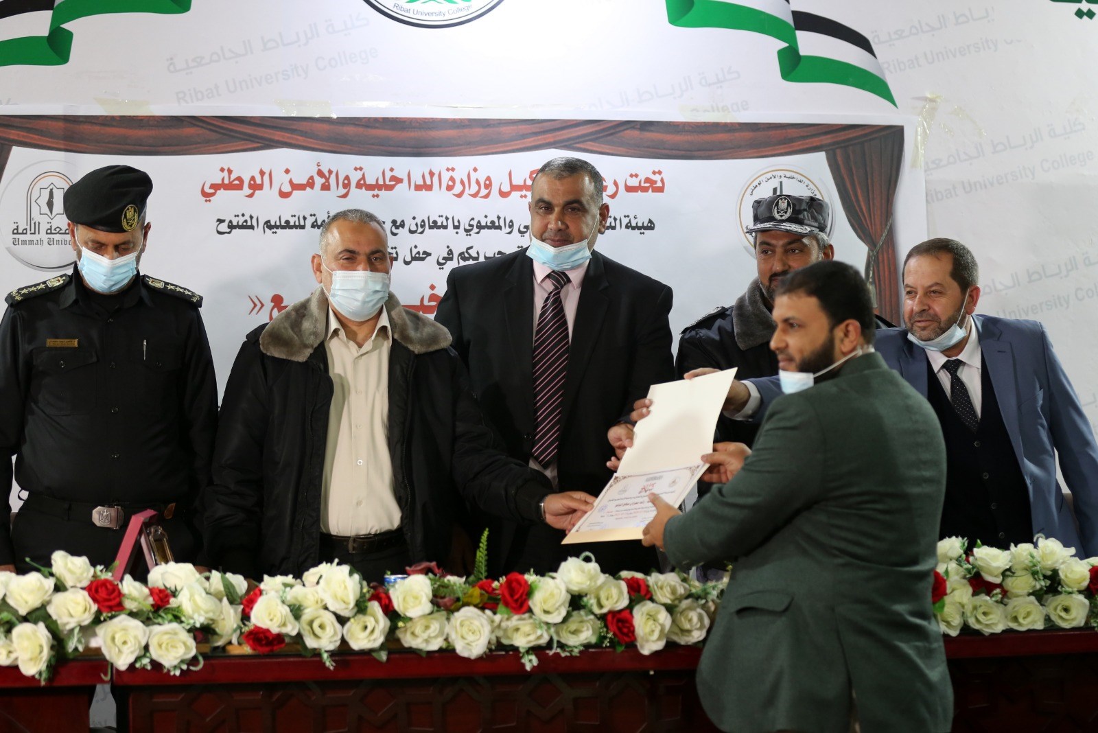 وأقيم حفل اختتام البرنامج في مقر كلية الرباط الجامعية بحضور العميد د. محمد الجريسي رئيس هيئة التوجيه السياسي والمعنوي ود. نصر الدين مدوخ رئيس جامعة الأمة والعميد بهجت أبو سلطان مدير عام هيئة التنظيم والإدارة، والعميد محمد خلف مدير عام المديرية العامة للتدريب، وعميد كلية الرباط الجامعية ناصر سليمان.
