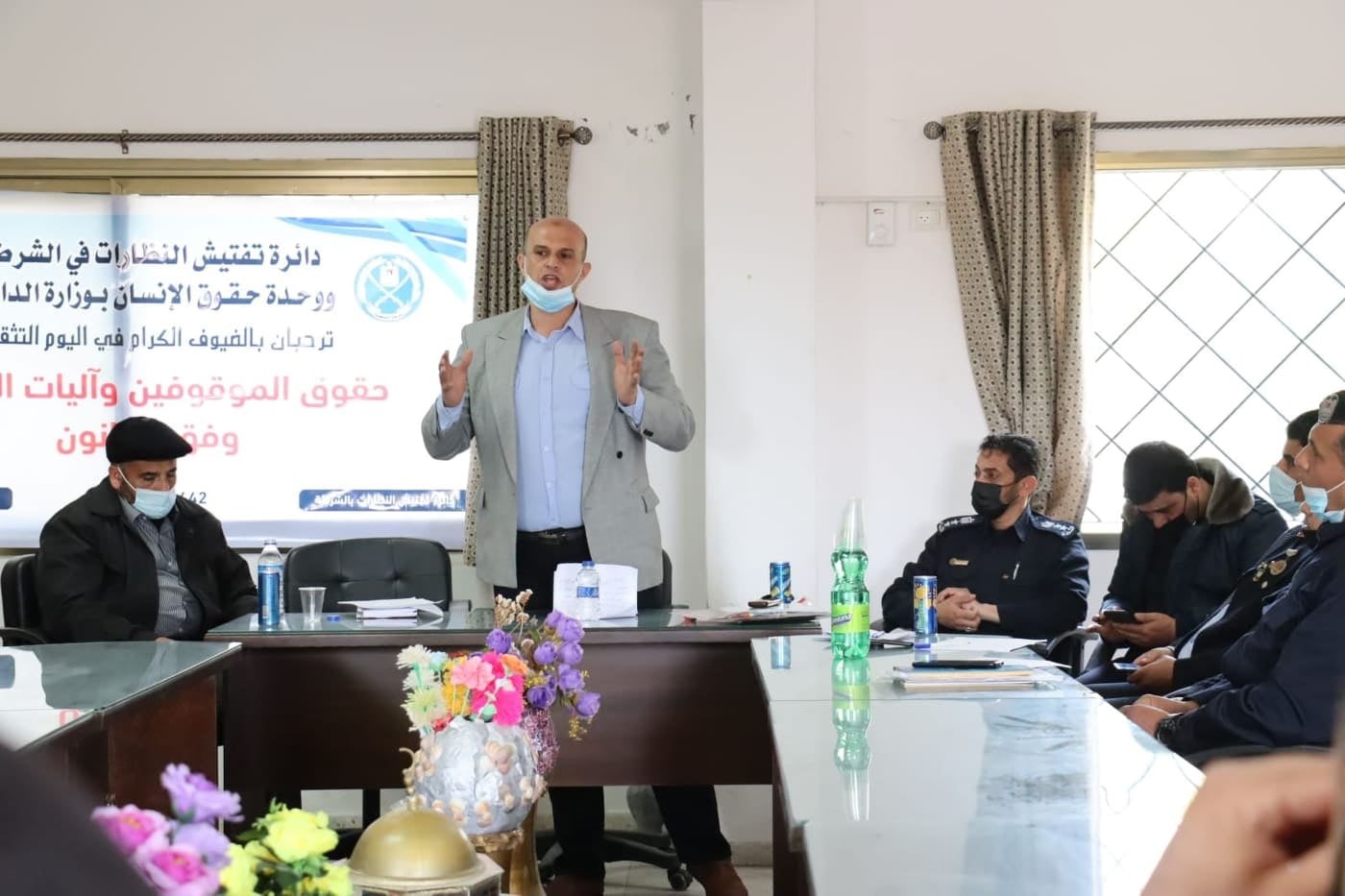 اختتمت دائرة مفتش النظارات، بمكتب مساعد مدير عام الشرطة لشؤون المحافظات بالتعاون مع وحدة حقوق الإنسان بوزارة الداخلية والأمن الوطني برنامجاً تثقيفياً بعنوان "حقوق الموقوفين وآليات التعامل معهم وفق القانون"، شمل أقسام النظارات في المحافظات الخمس.