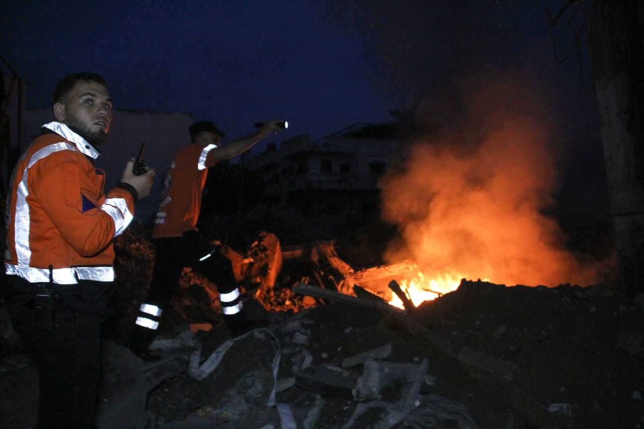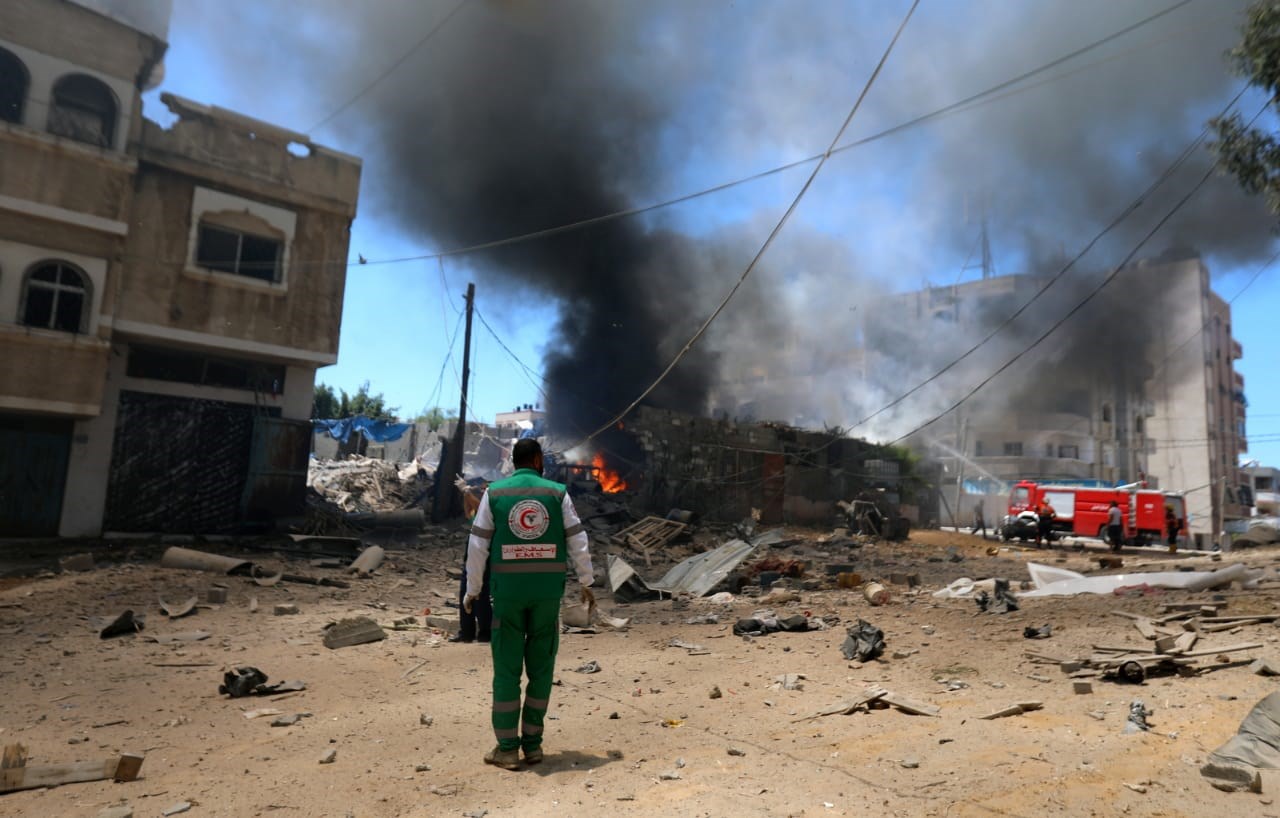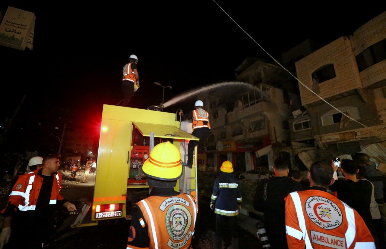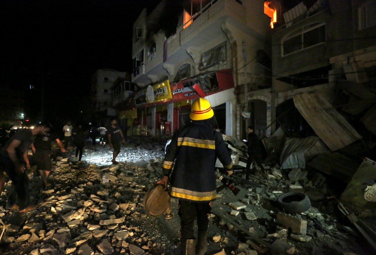 فيما أخمدت طواقم الإطفاء حريقا شبّ في عمارة بمنطقة الرمال وسط غزة، إثر استهدافها من طيران الاحتلال.