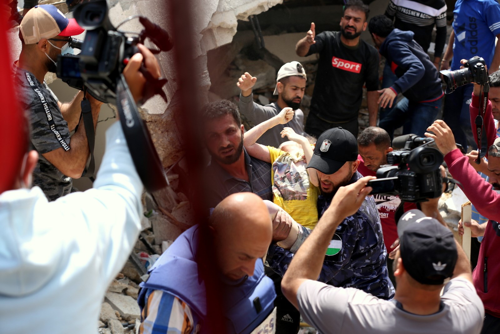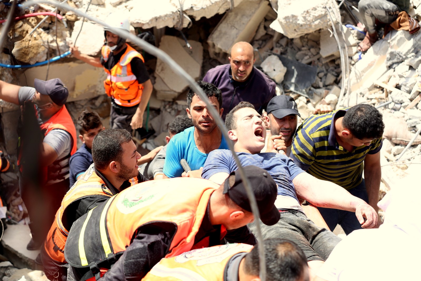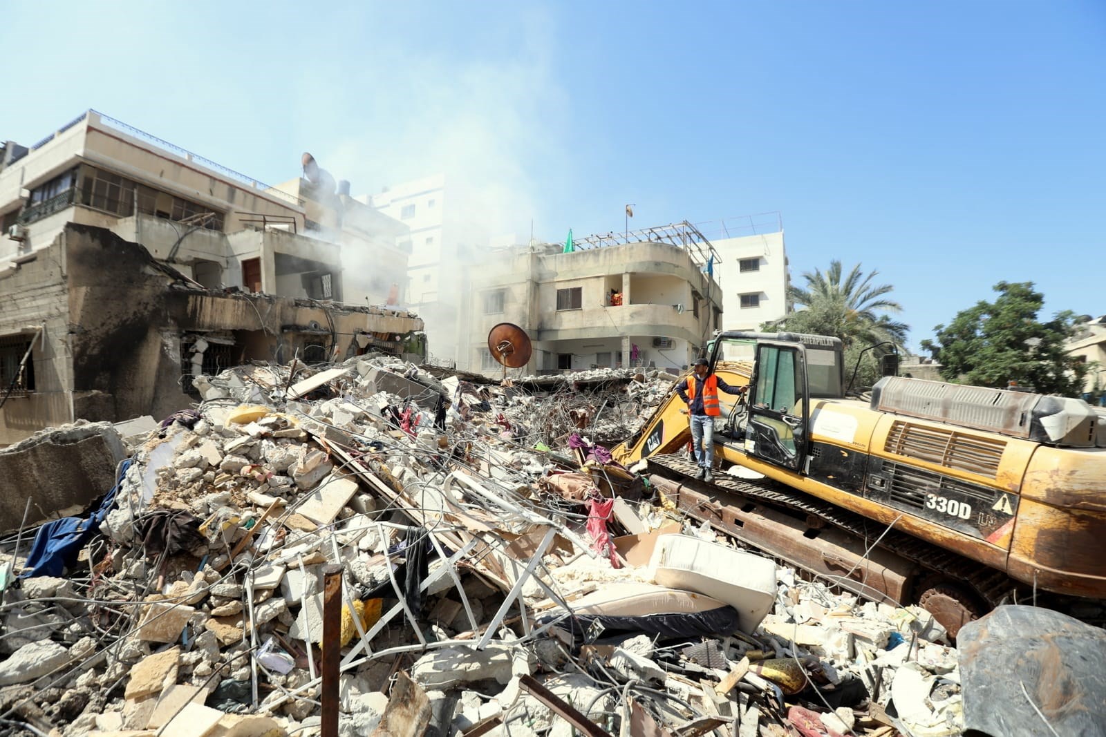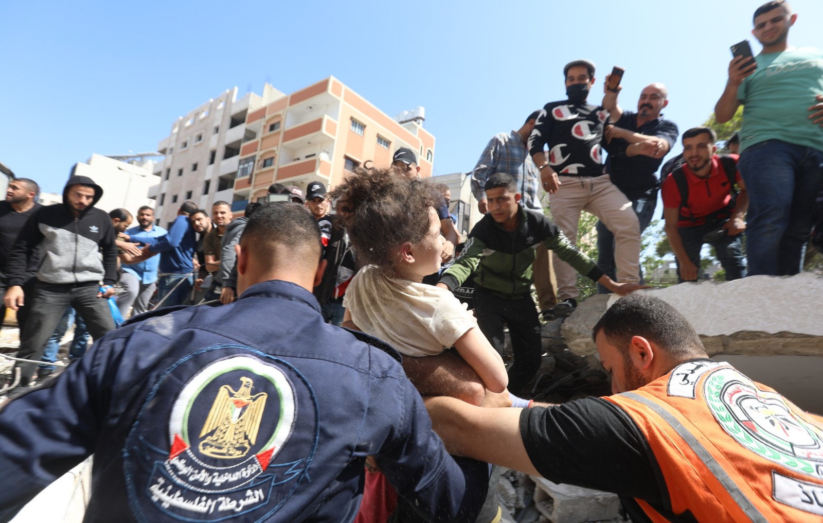 وتعمل الأطقم الطبية والخدماتية على إنقاذ المصابين وانتشال جثامين الشهداء من بين ركام المنازل المدمرة في منطقة حي الرمال بمدينة غزة.