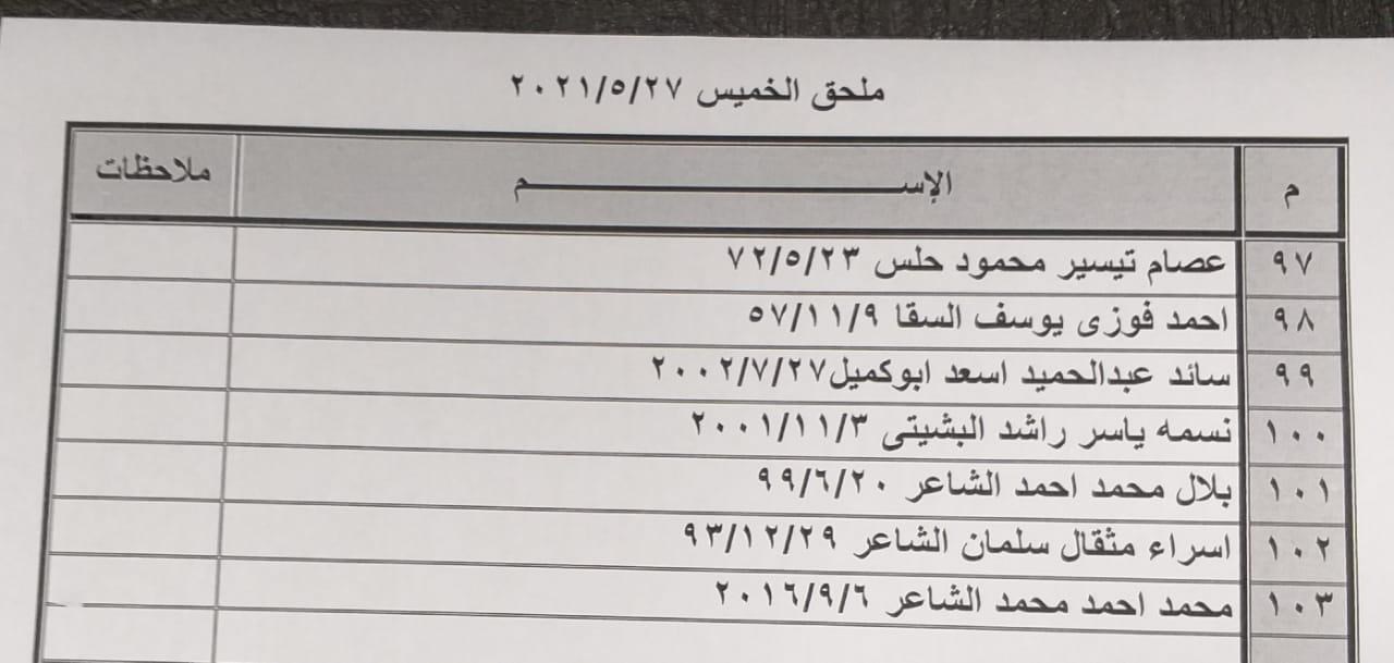 - تعلن الهيئة العامة للمعابر والحدود بوزارة الداخلية والأمن الوطني عن وصول كشف "تنسيقات مصرية" للسفر عبر معبر رفح البري يوم غد الخميس (27 مايو)، والذين عليهم التوجه لإجراء فحص كورونا اليوم وفوراً في المراكز الصحية المعلن عنها بجميع المحافظات.