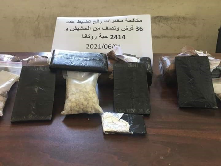 مكافحة المخدرات تضبط 49 فرش حشيش و3 آلاف حبة "روتانا"