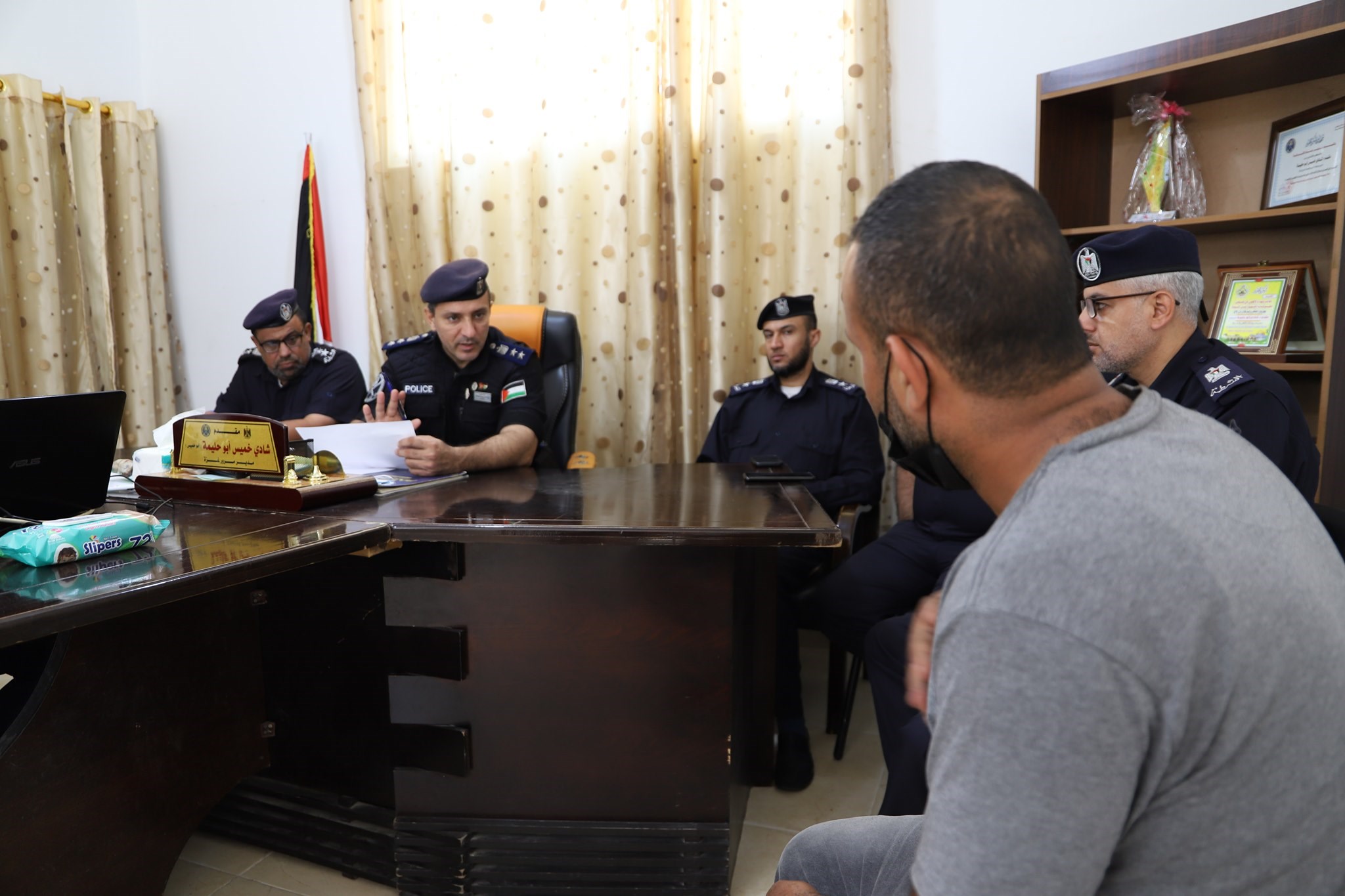 وكان إلى جانب مدير شرطة المرور في استقبال شكاوى المواطنين نائبه العقيد ابراهيم أبو جياب والمقدم شادي أبو حليمة مدير شرطة مرور محافظة غزة.