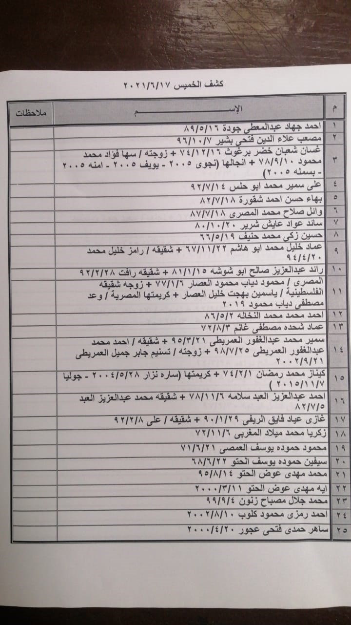 تعلن الهيئة العامة للمعابر والحدود بوزارة الداخلية والأمن الوطني عن وصول كشف "تنسيقات مصرية" للسفر عبر معبر رفح البري يوم غد الخميس (17 يونيو)، والذين عليهم التوجه لإجراء فحص كورونا الساعة 8 صباحاً في مركز شهداء رفح الصحي، ثم التوجه للصالة الخارجية للمعبر لتسهيل سفرهم.
