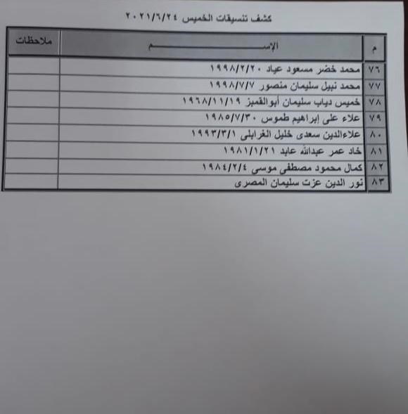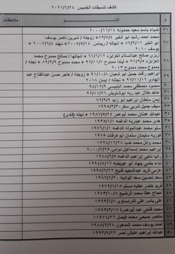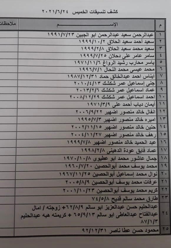 تعلن الهيئة العامة للمعابر والحدود بوزارة الداخلية والأمن الوطني عن وصول كشف "تنسيقات مصرية" للسفر عبر معبر رفح البري يوم غد الخميس (24 يونيو)، والذين عليهم التوجه لإجراء فحص كورونا الساعة 8 صباحاً في مركز شهداء رفح الصحي، ثم التوجه للصالة الخارجية للمعبر لتسهيل سفرهم.