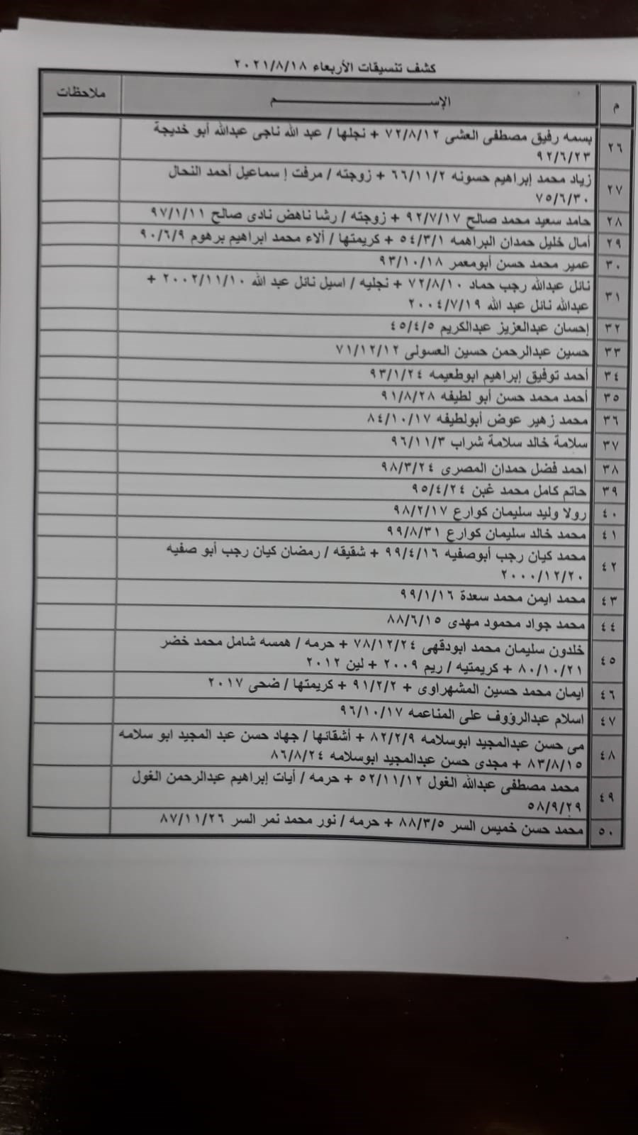 تعلن الهيئة العامة للمعابر والحدود بوزارة الداخلية والأمن الوطني عن وصول كشف "تنسيقات مصرية" للسفر عبر معبر رفح البري يوم غد الأربعاء (18 أغسطس)، والذين عليهم التوجه لإجراء فحص كورونا الساعة 7 صباحاً في مركز شهداء رفح الصحي، ثم التوجه للصالة الخارجية للمعبر لتسهيل سفرهم.