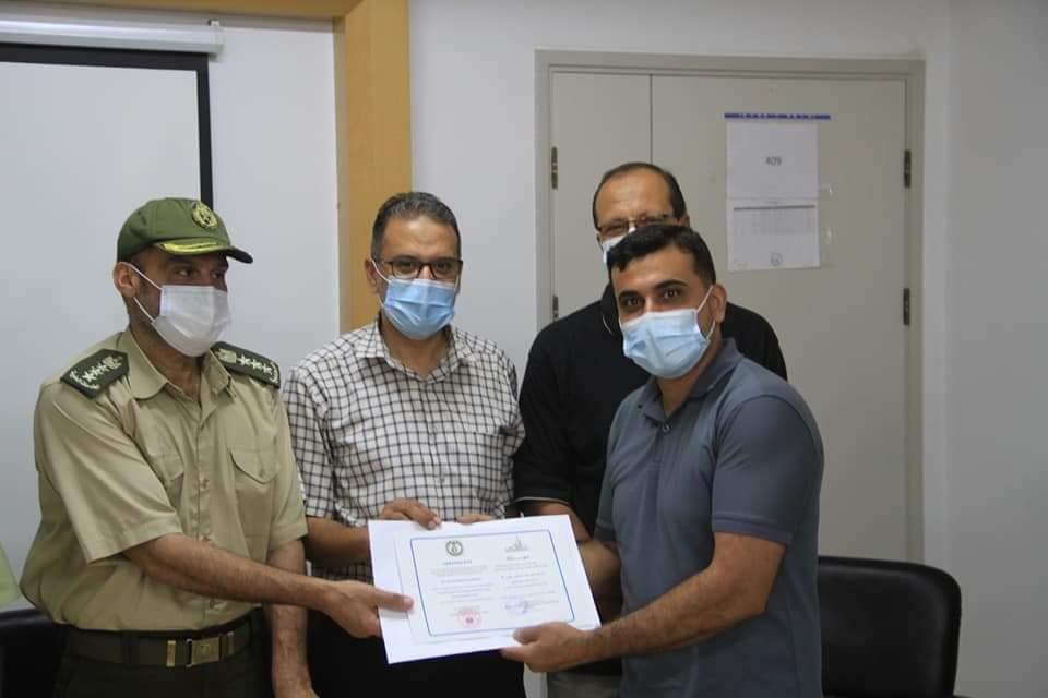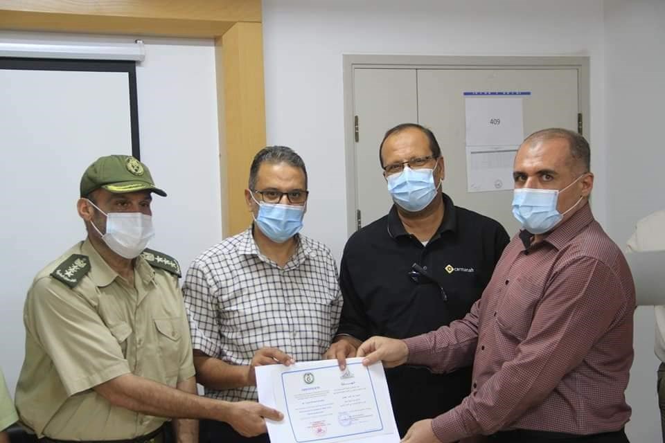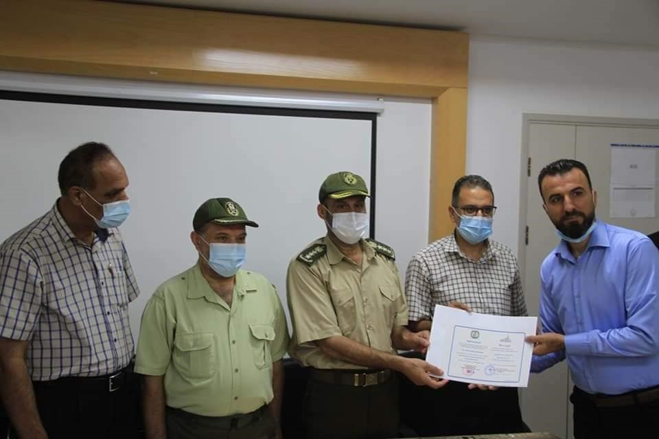 وكرم مدير عام الخدمات الطبية العميد محمد صالح وعدد من مساعديه ومديرة التدريب لبرنامج غزة للصحة النفسية رواية حمام الكوادر الطبية والإدارية المشاركة في الدورة.