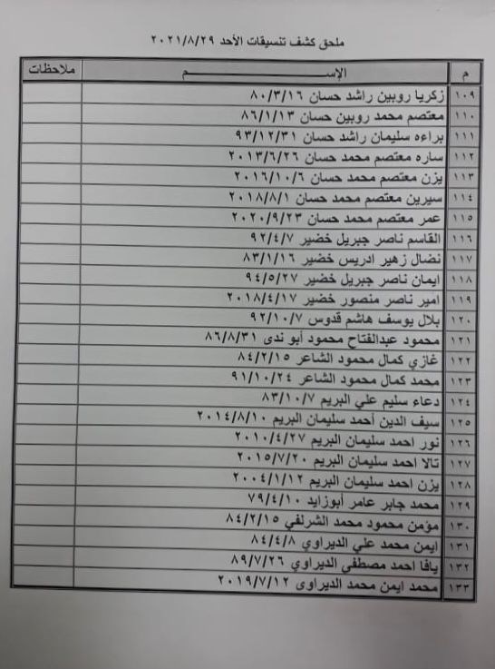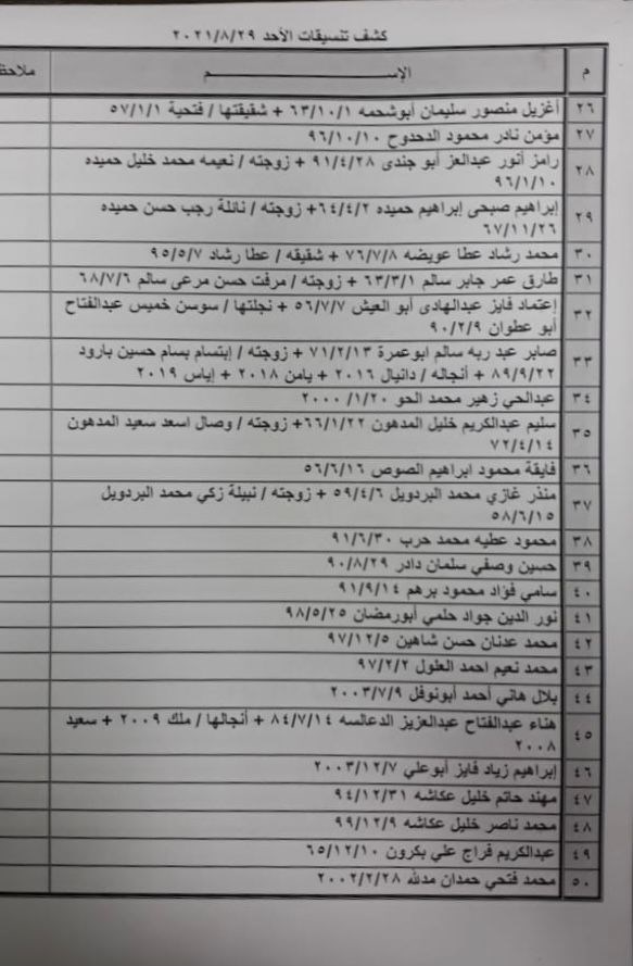 تعلن الهيئة العامة للمعابر والحدود بوزارة الداخلية والأمن الوطني عن وصول كشف "تنسيقات مصرية" للسفر عبر معبر رفح البري يوم الأحد (29 أغسطس)، والذين عليهم التوجه لإجراء فحص كورونا الساعة 7 صباح الأحد في مركز شهداء رفح الصحي، ثم التوجه للصالة الخارجية للمعبر لتسهيل سفرهم.