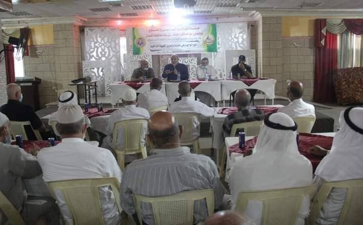 نظمت هيئة التوجيه السياسي والمعنوي بمحافظة شمال غزة وبالتعاون مع العلاقات العامة لشرطة الشمال لقاءً سياسيًا لوجهاء ومخاتير الشمال بعنوان "دور الوجهاء في حماية وتعزيز الجبهة الداخلية" بقاعة السلامة بمنطقة مشروع بيت لاهيا.