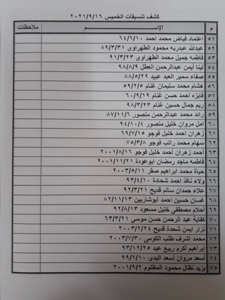 تعلن الهيئة العامة للمعابر والحدود بوزارة الداخلية والأمن الوطني عن وصول كشف "تنسيقات مصرية" للسفر عبر معبر رفح البري يوم غد الخميس (16 سبتمبر)، والذين عليهم التوجه لإجراء فحص كورونا اليوم الأربعاء بدءاً من الساعة 9 صباحاً في المراكز الصحية المعلن عنها مسبقاً بجميع المحافظات.