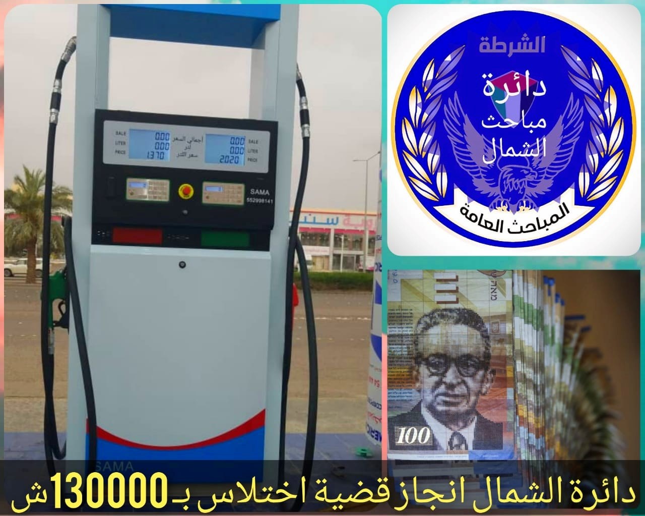 أنجزت دائرة المباحث العامة بشرطة محافظة شمال غزة _ قسم بيت حانون_ قضية اختلاس مالي بقيمة 130 ألف شيكل من محطة وقود.
