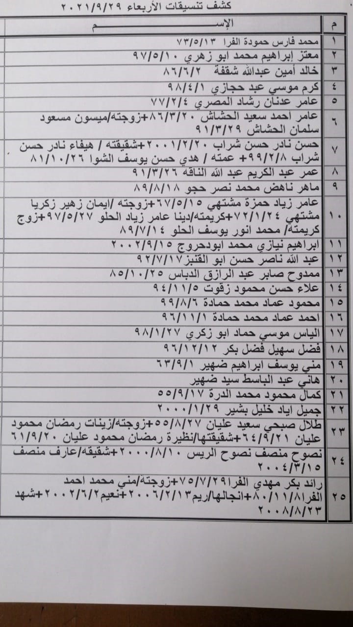 كما عليهم التواجد الساعة 7 صباح الأربعاء في الصالة الخارجية للمعبر لتسهيل سفرهم.